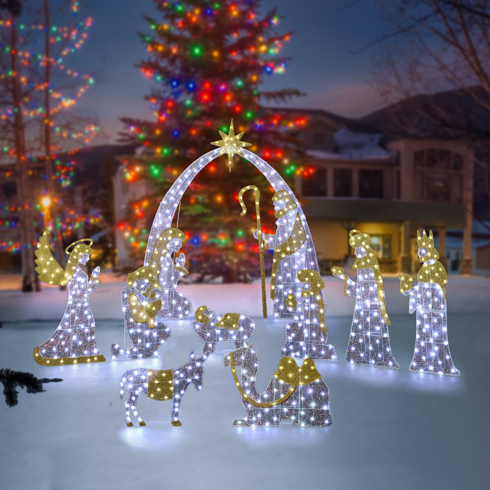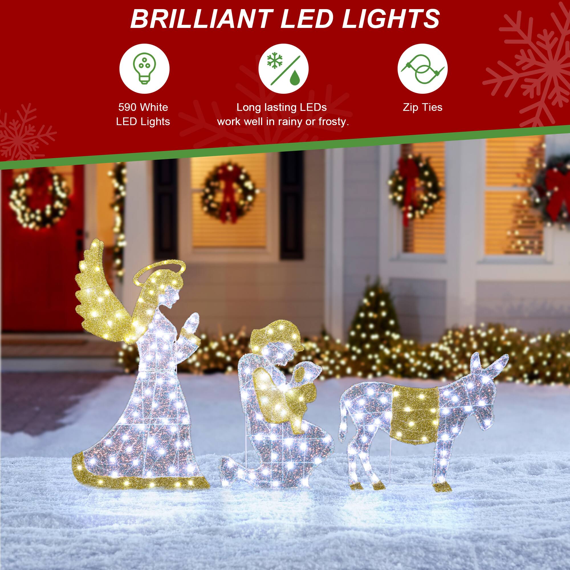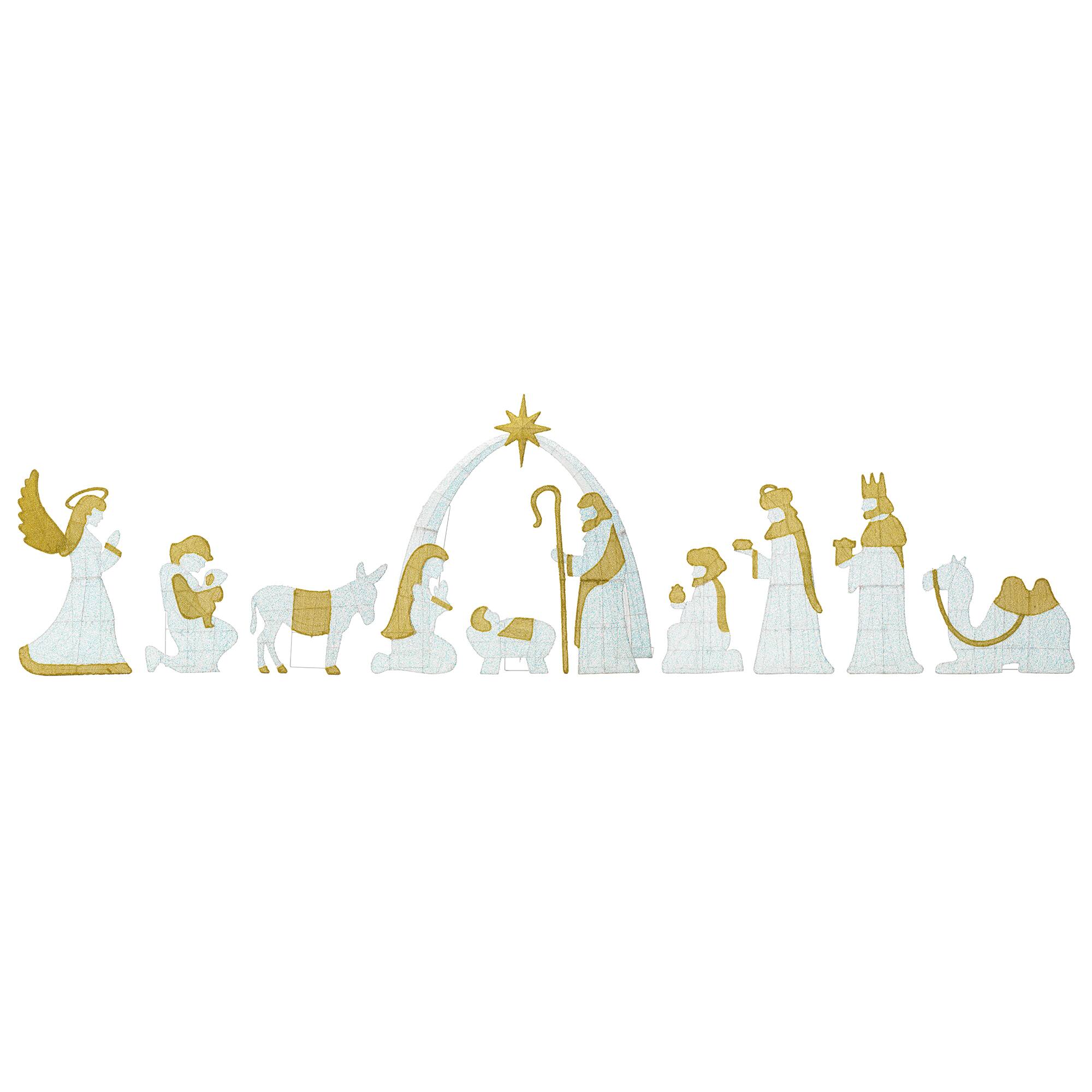 Glitzhome® 55"H Lighted Christmas 2D Iridescent Fabric Nativity Scene Outdoor Decor Set