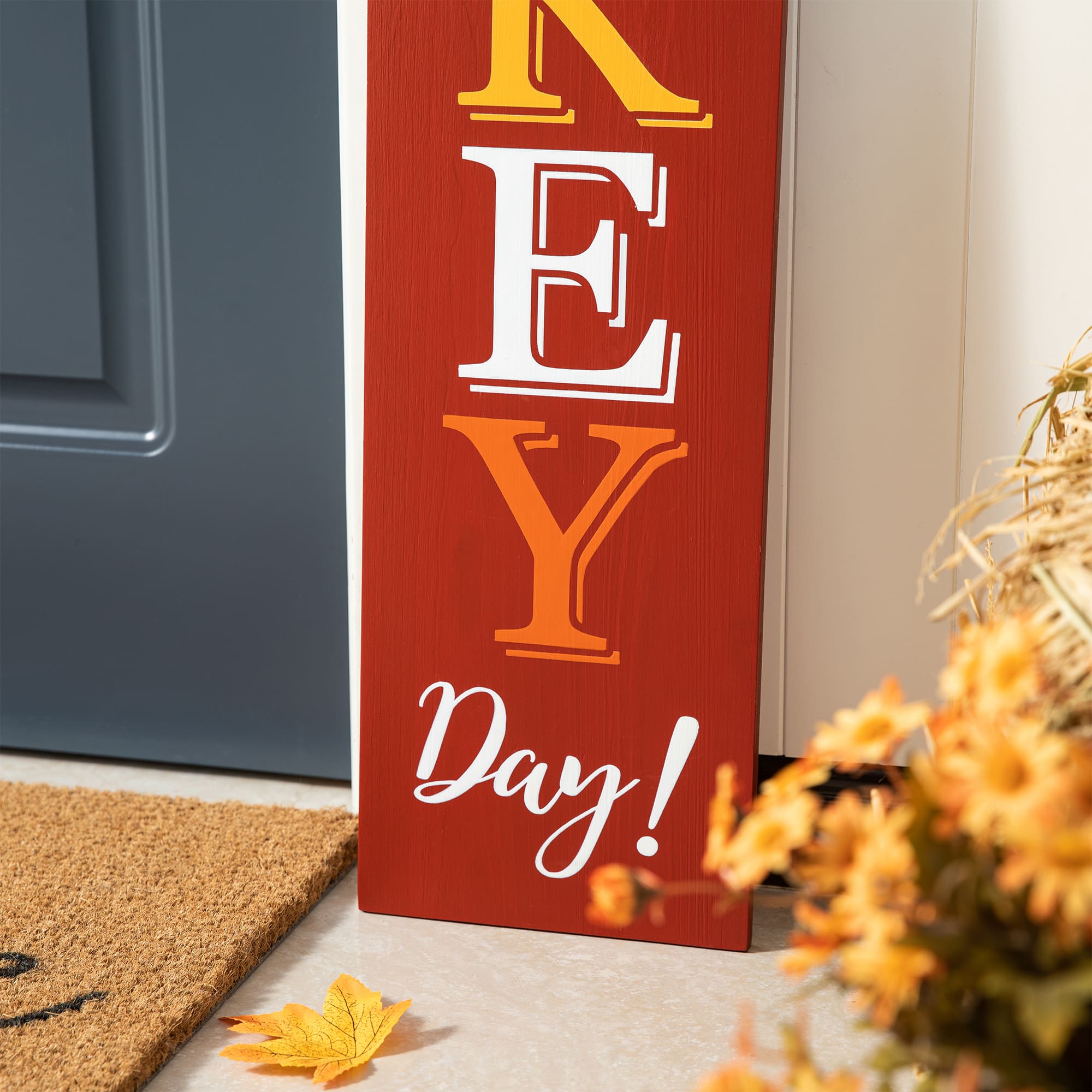 Glitzhome® 58.5" Thanksgiving Wood "HAPPY TURKEY DAY" Porch Sign