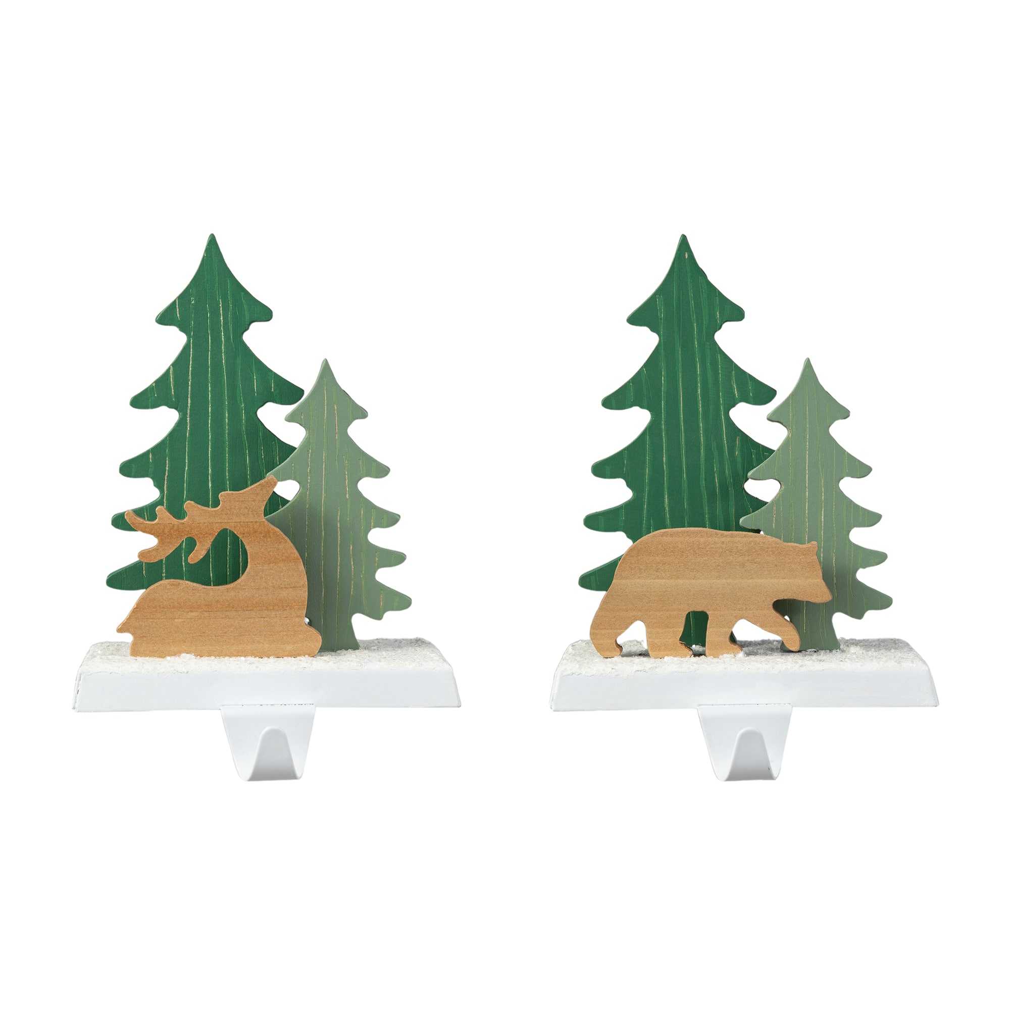 Glitzhome® 6.5" Christmas Reindeer & Bear Stocking Holder Set