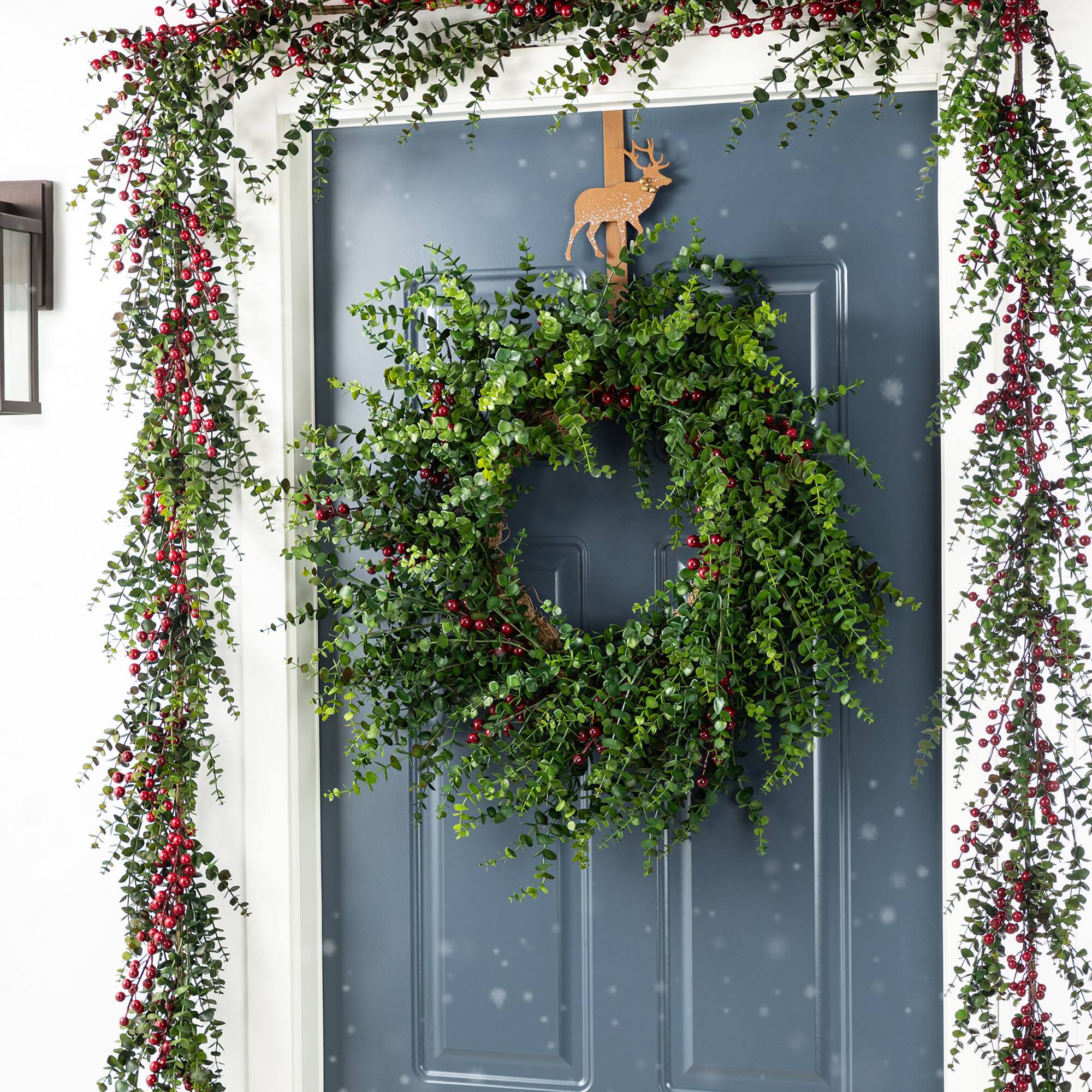 Glitzhome® 6ft Christmas Greenery Eucalyptus Garland with Red Berries, 2ct.