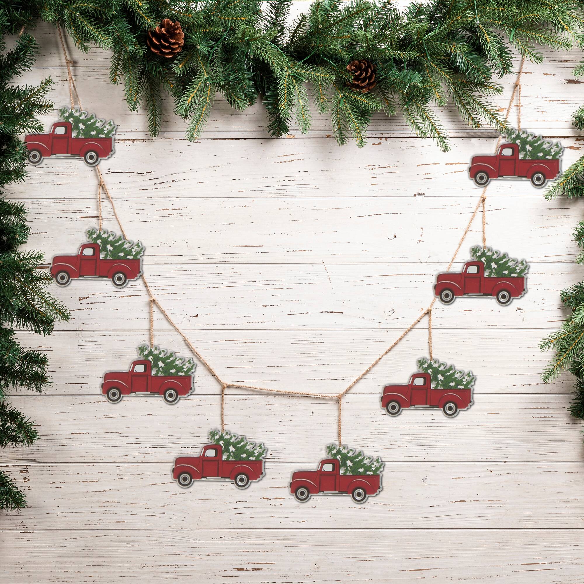 Glitzhome® 6ft. Christmas Red Truck Garland, 2ct.
