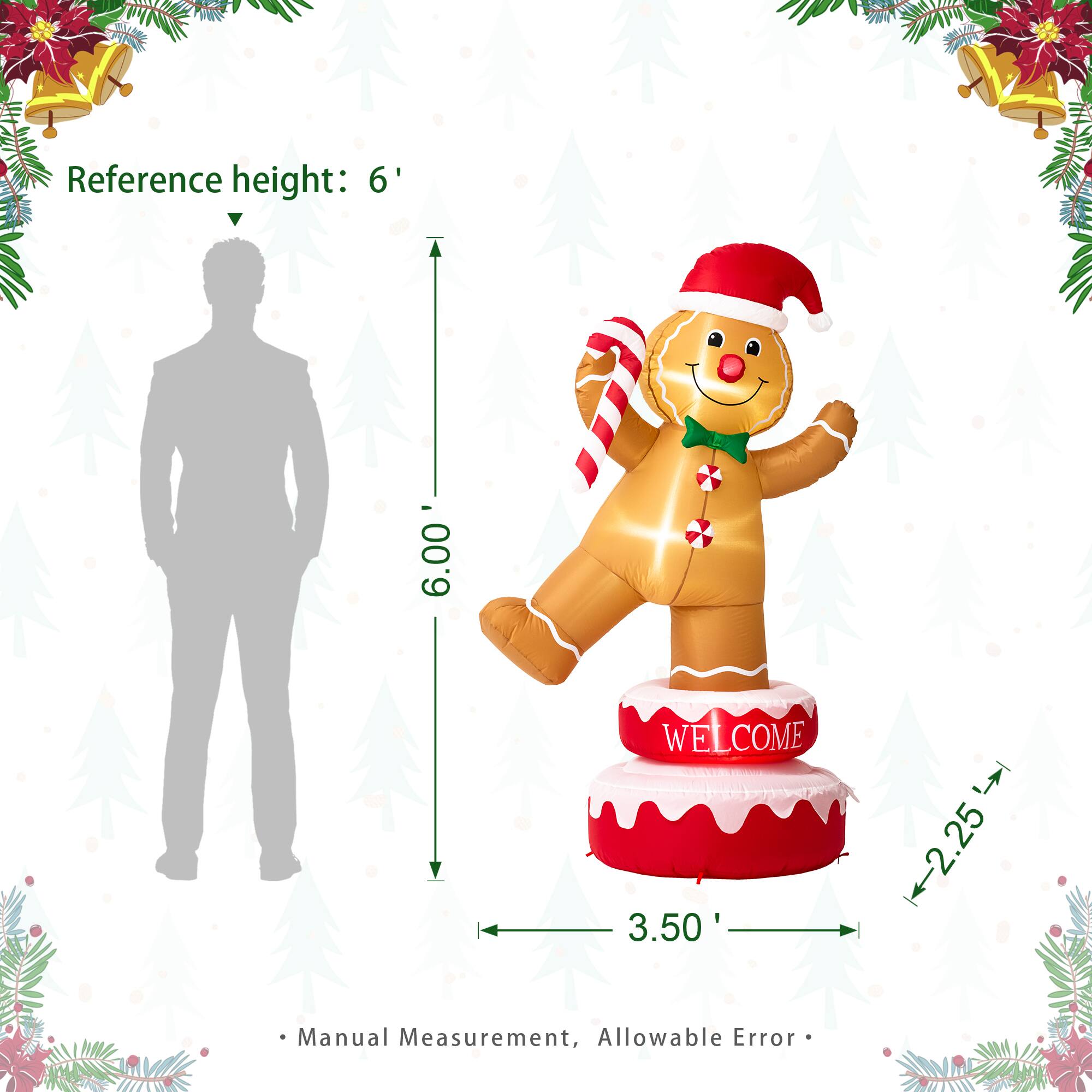 Glitzhome® 6ft. Lighted Inflatable Rotating Gingerbread Man Décor