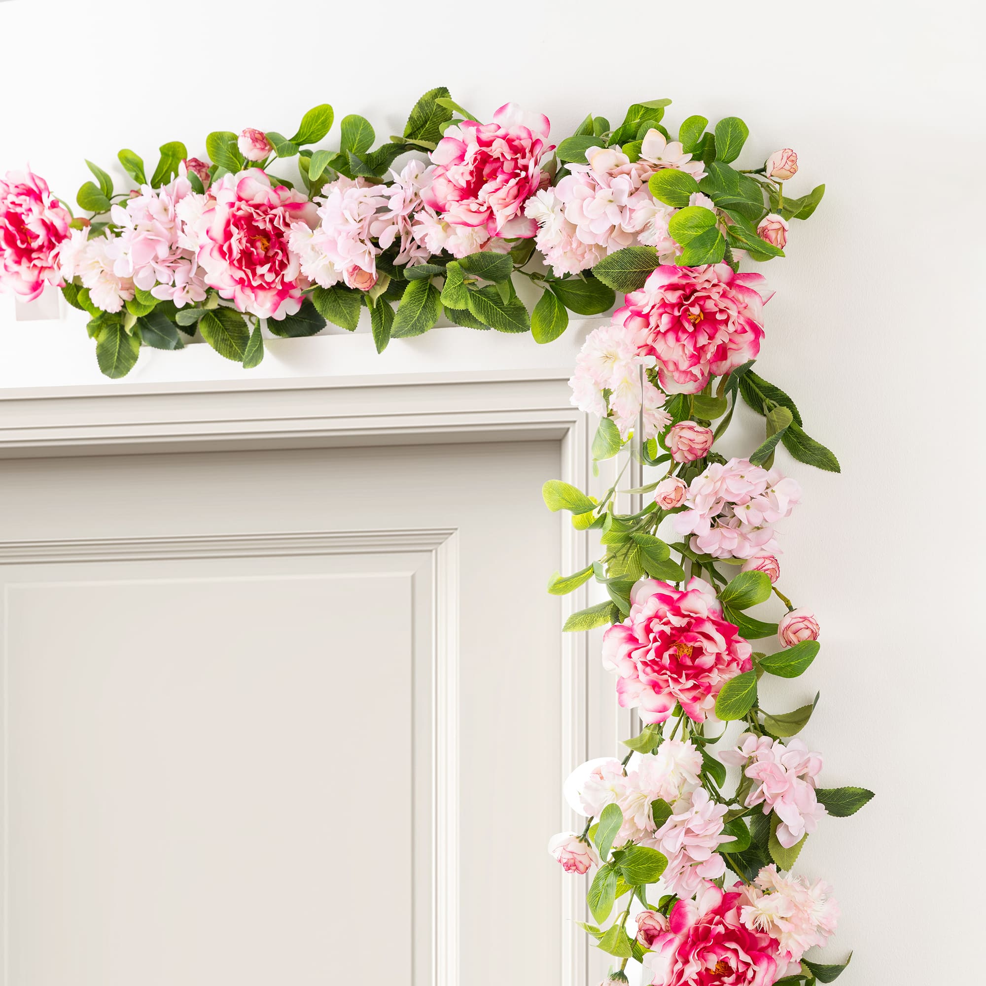 Glitzhome® 6ft. Pink Hydrangea, Peony & Cherry Floral Garland