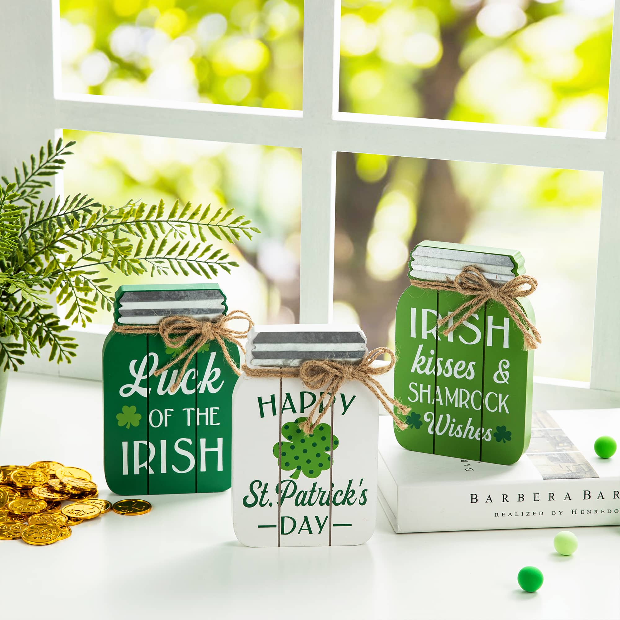 Glitzhome® 7" Set of 3 St. Patrick's Wooden Mason Jar Table decor