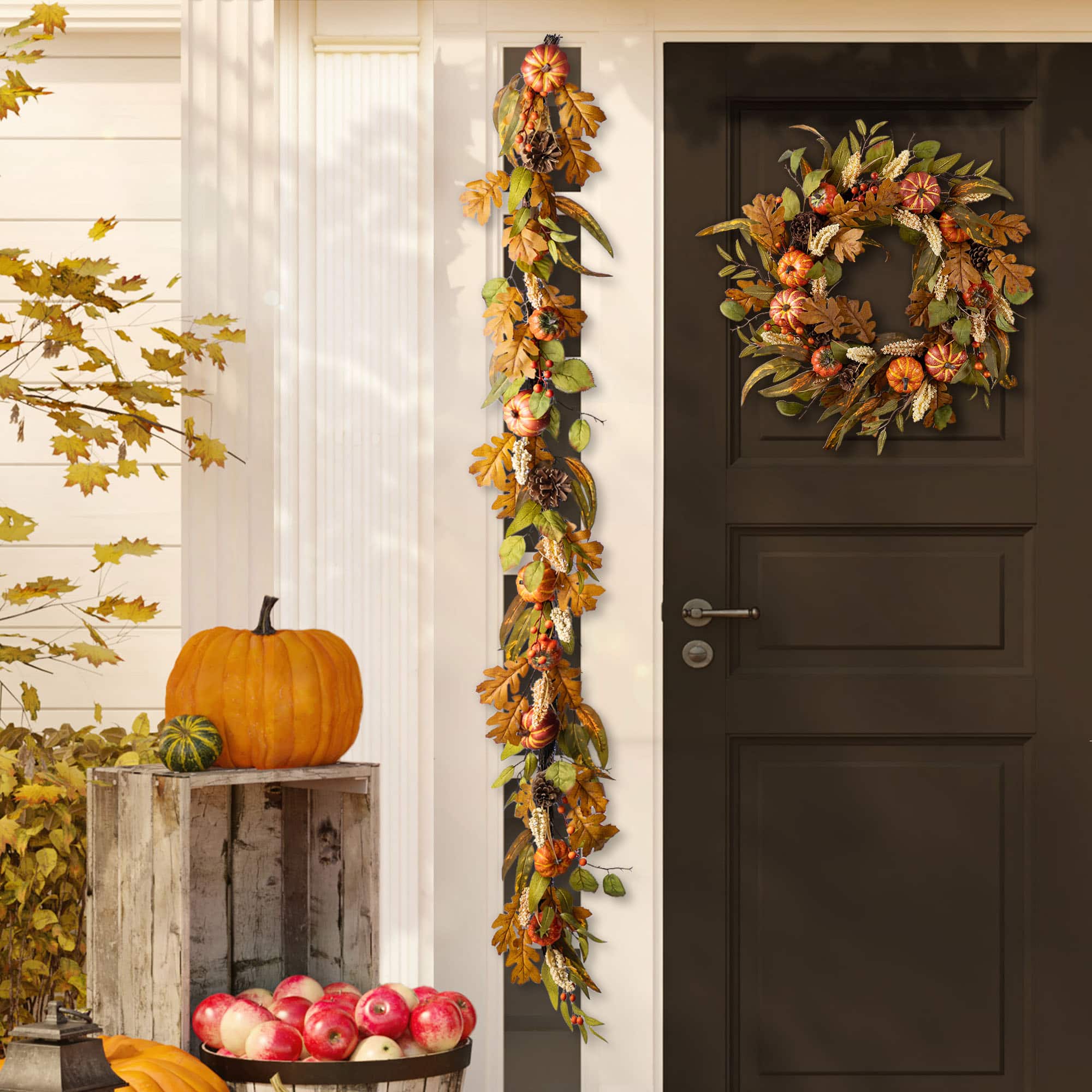 Glitzhome® 72" Fall Pumpkin Leaf Floral Garland