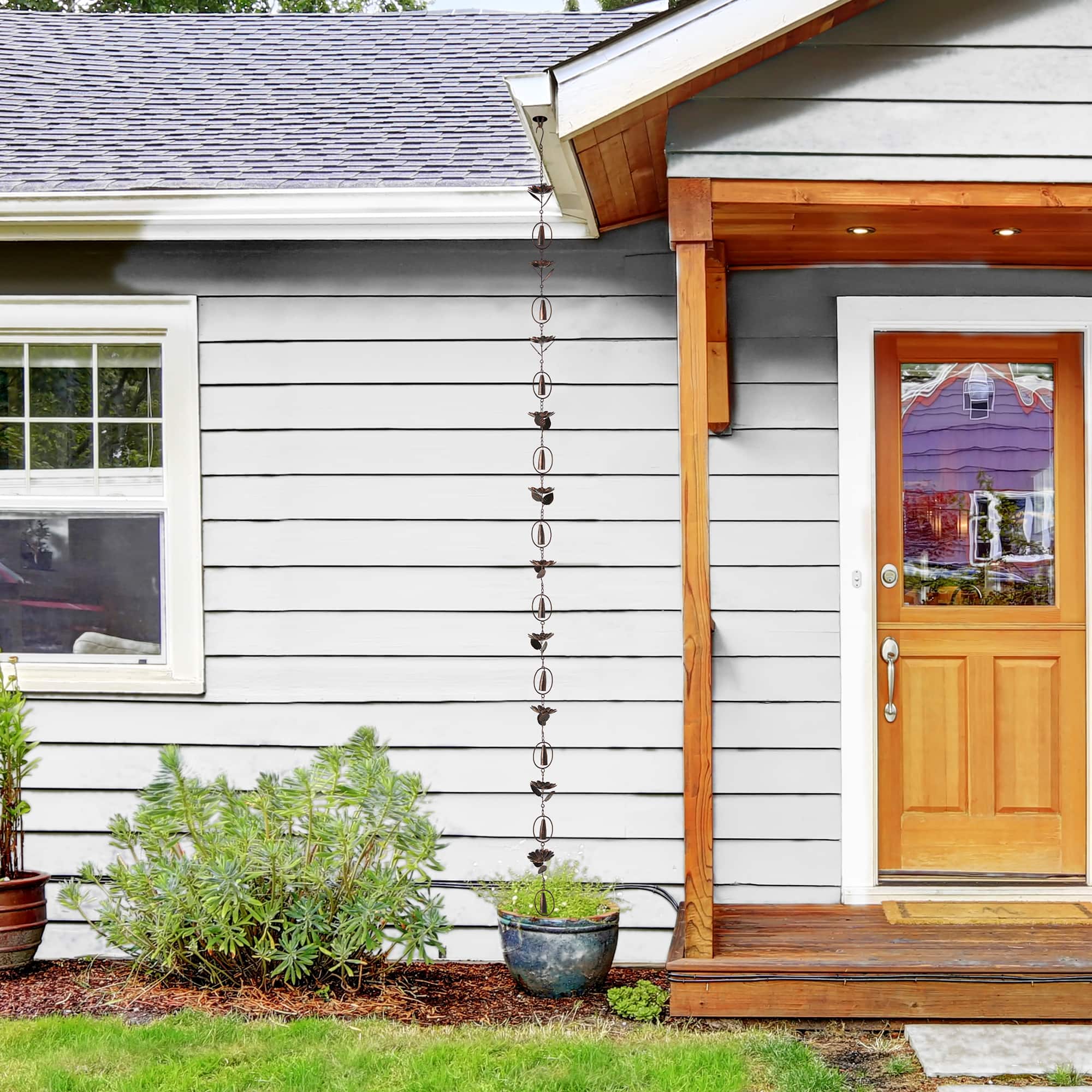 Glitzhome® 8.5ft. Faux Copper Lotus Flower & Bell Rain Chain