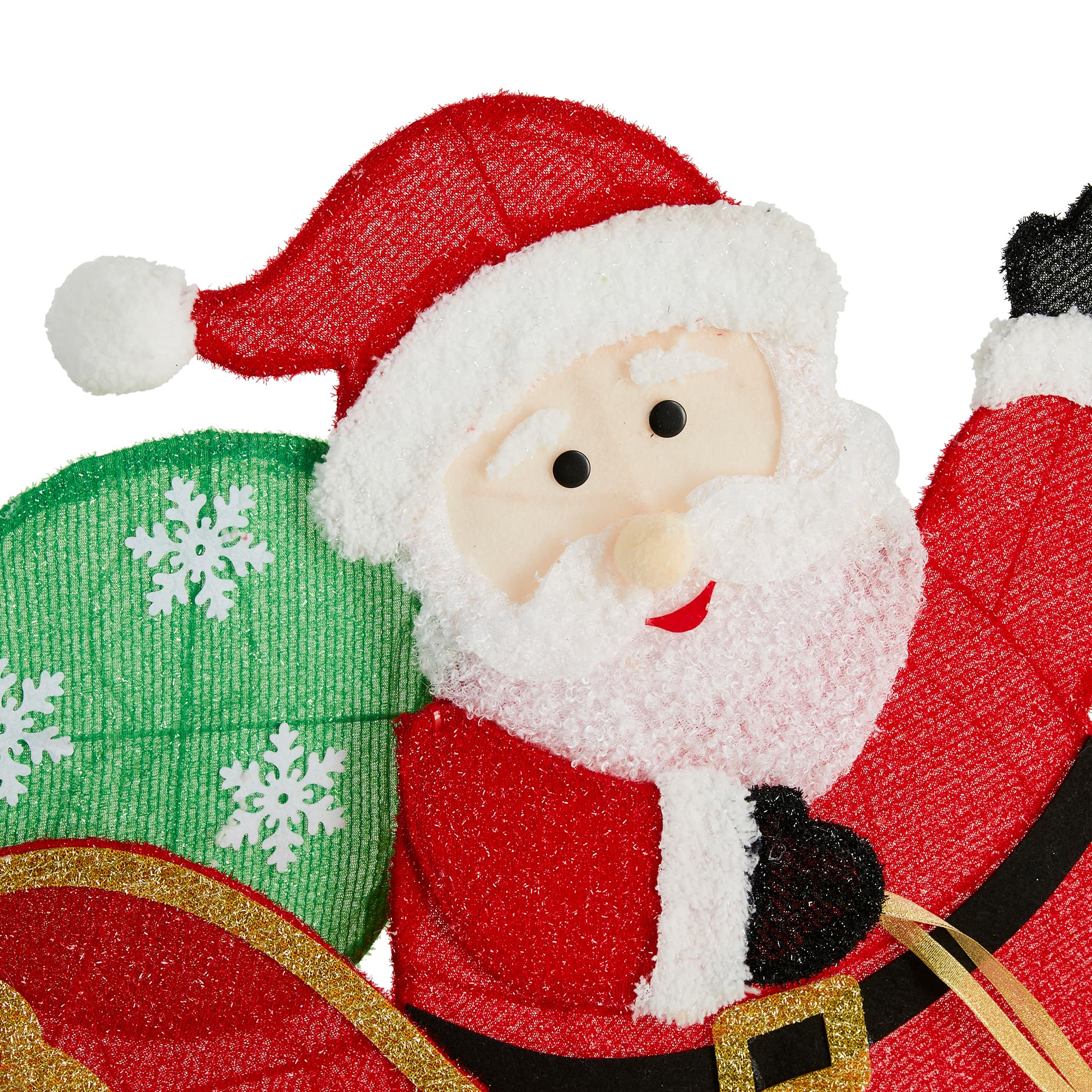 Glitzhome® 90.5"L Lighted Christmas 2D Fabric Dog with Santa Sleigh Outdoor Decor