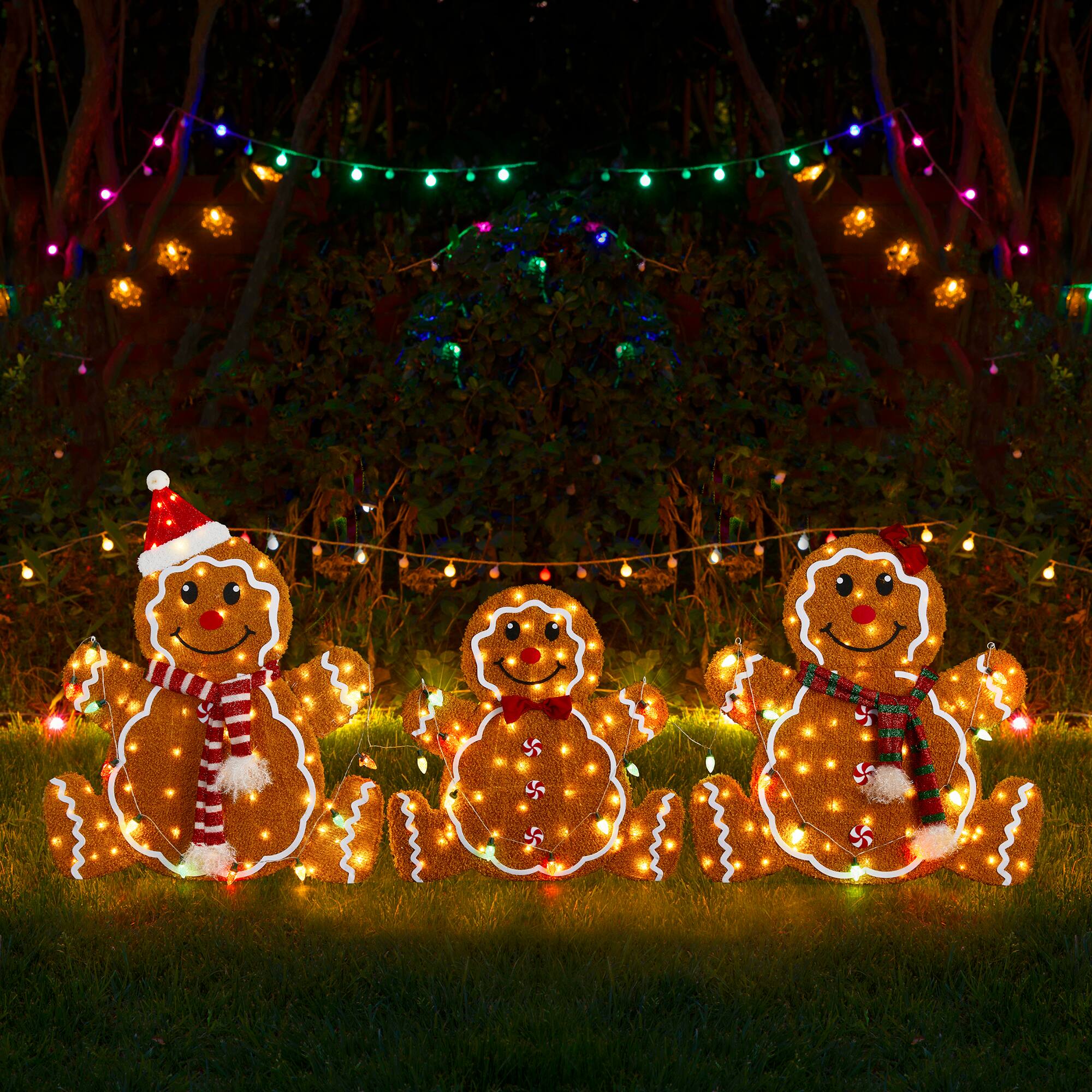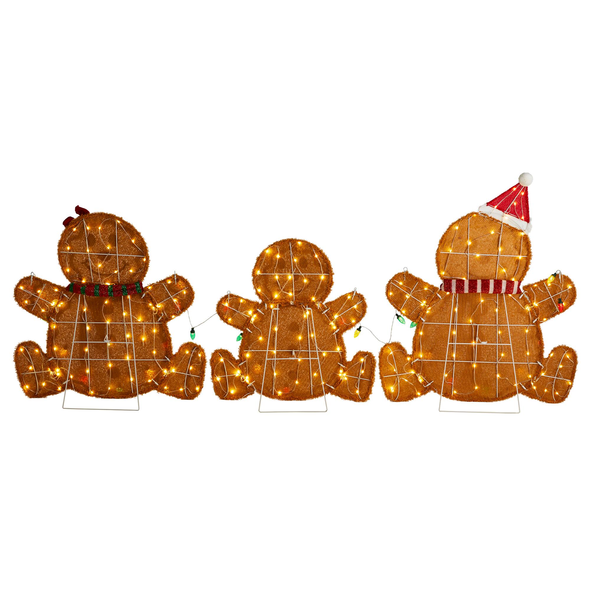 Glitzhome® 90.5"L Lighted Christmas 2D Fabric Gingerbread Family Outdoor Decor Set