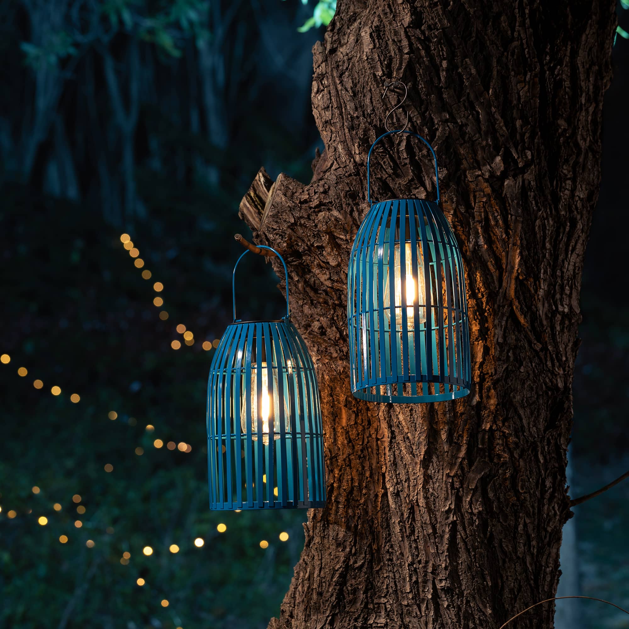 Glitzhome® 9.75" Metal Woven Solar Powered Hanging Lantern, 2ct.