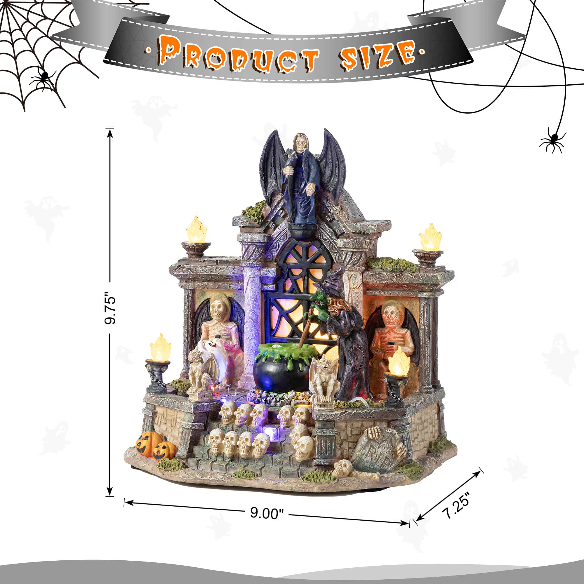 Glitzhome® 9.75"H Lighted Resin Halloween Haunted House Village