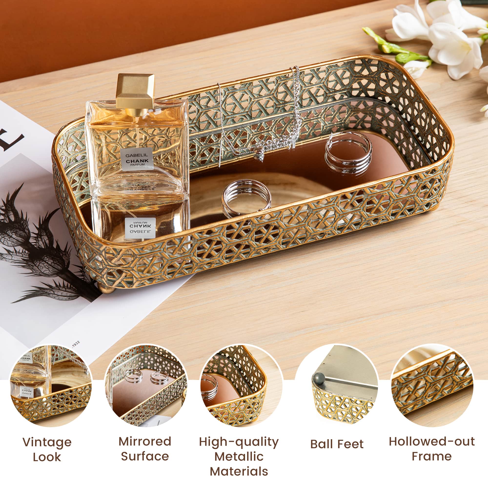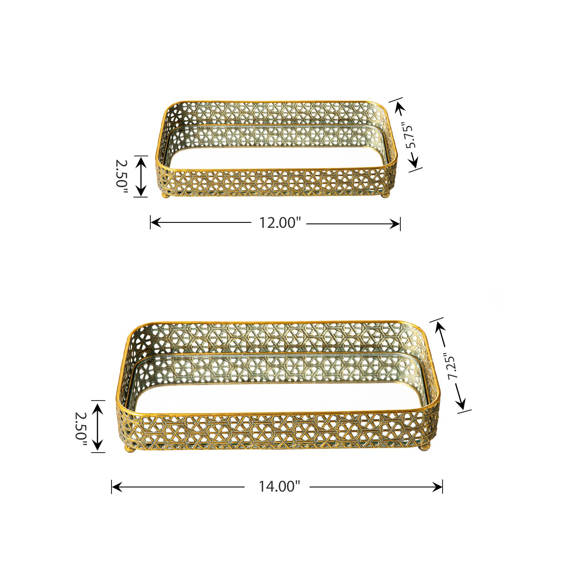 Glitzhome® Gold Rectangle Metal Mirrored Decorative Trays Set