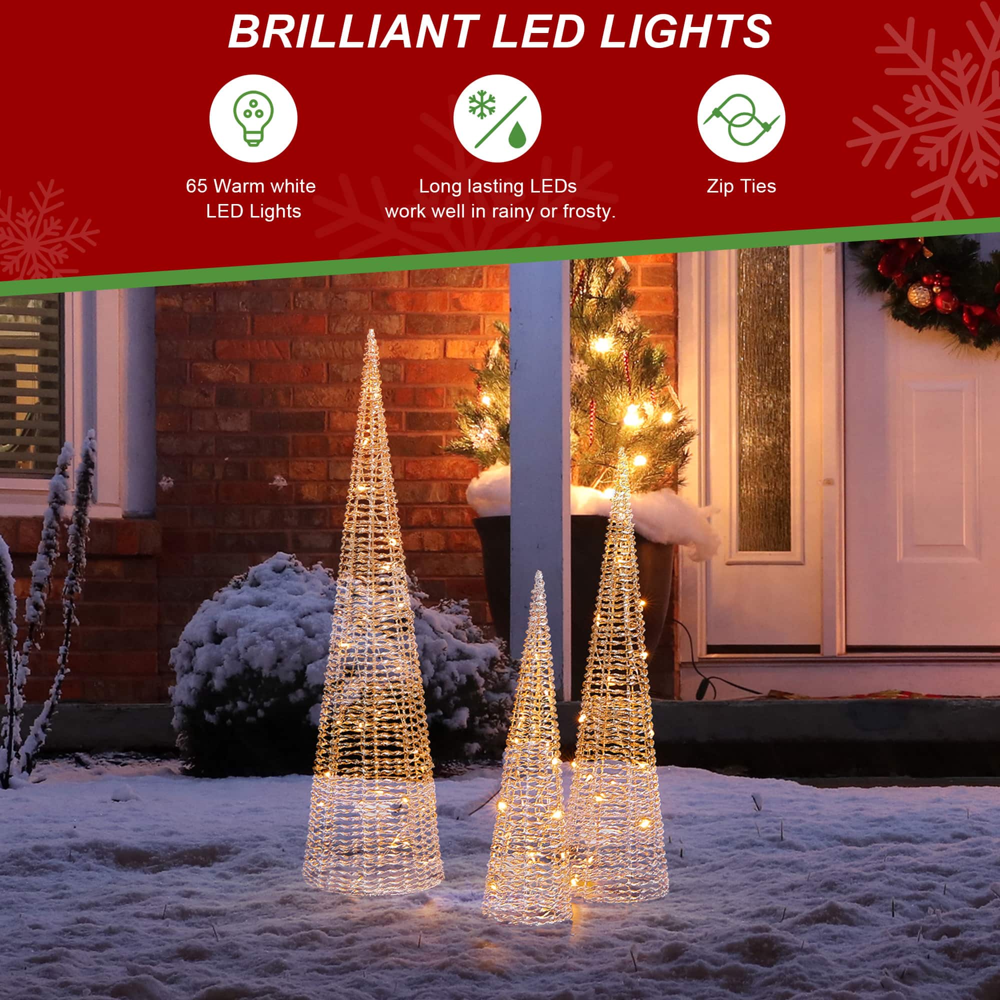 Glitzhome® Lighted Christmas Champagne Gold Cone Tree Outdoor Décor Set