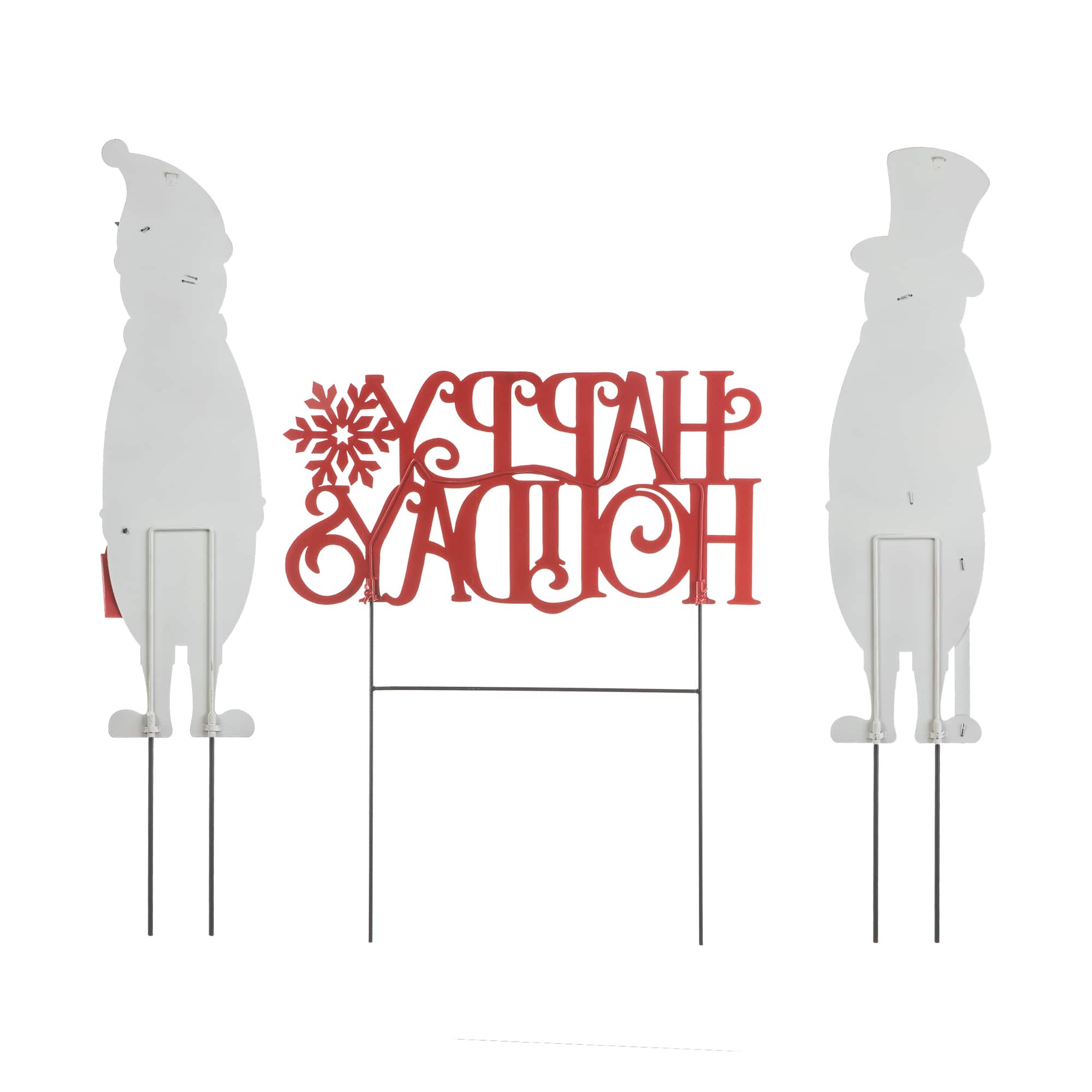 Glitzhome® Metal Snowmen & Happy Holidays Yard Stake Set