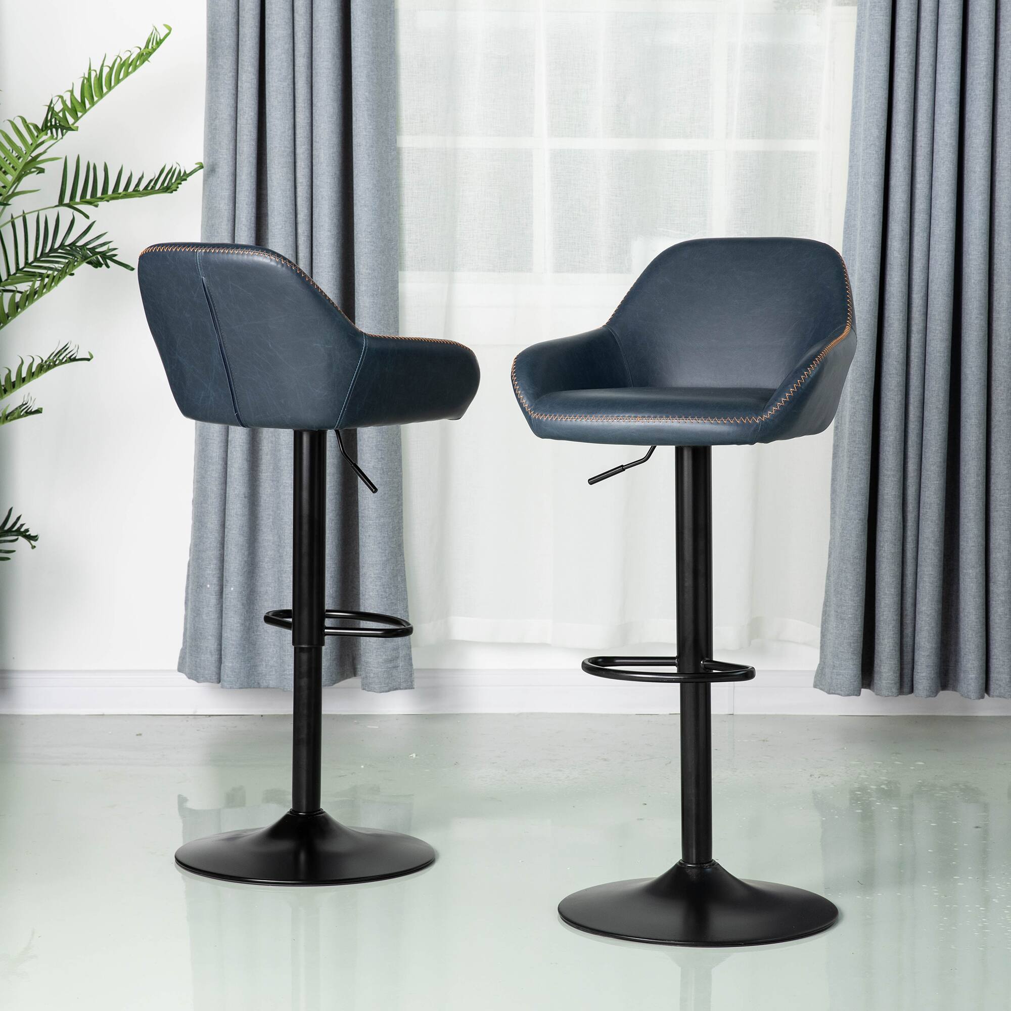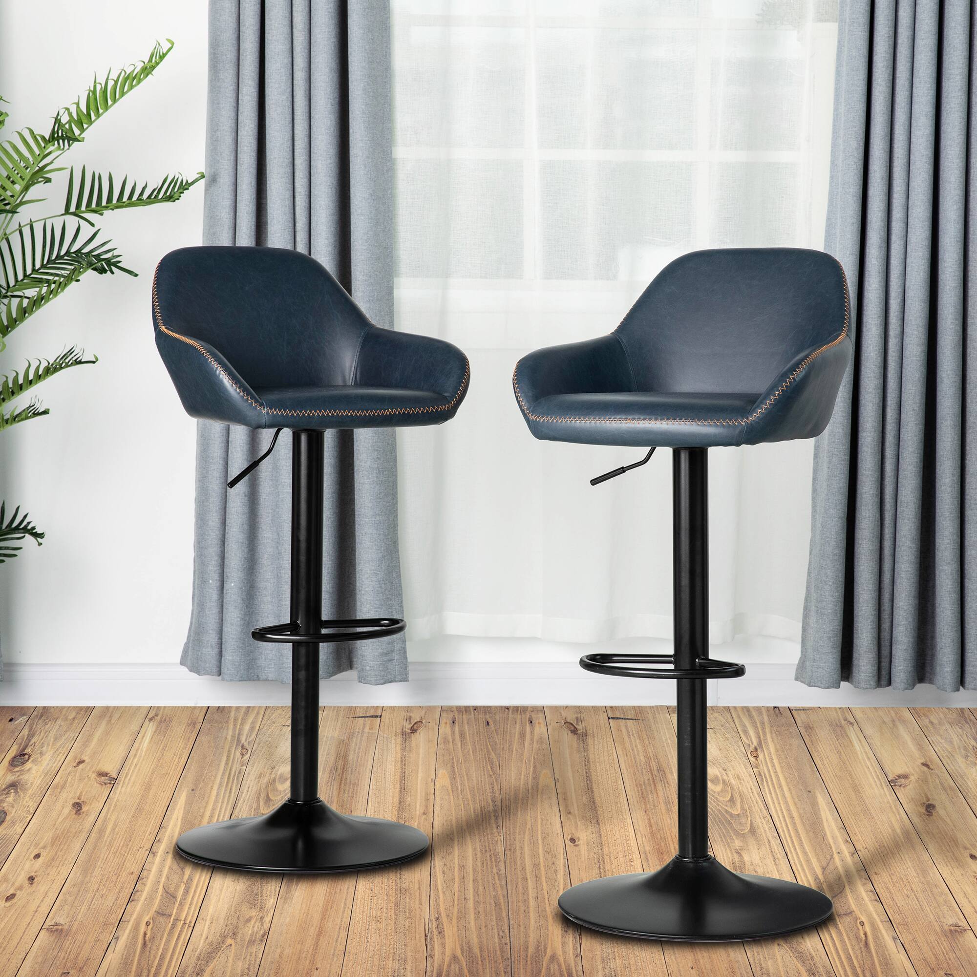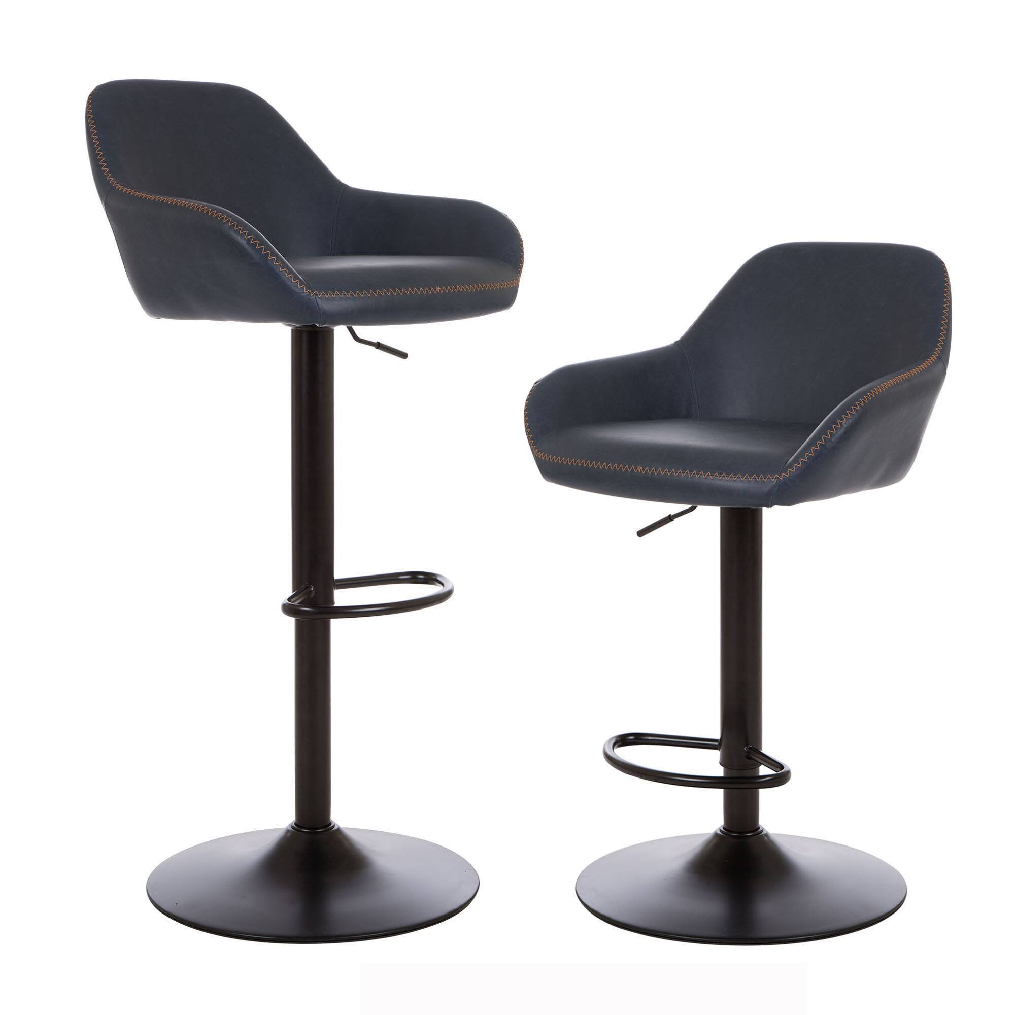 Glitzhome® Mid-Century Leatherette Gaslift Adjustable Swivel Bar Stool Set