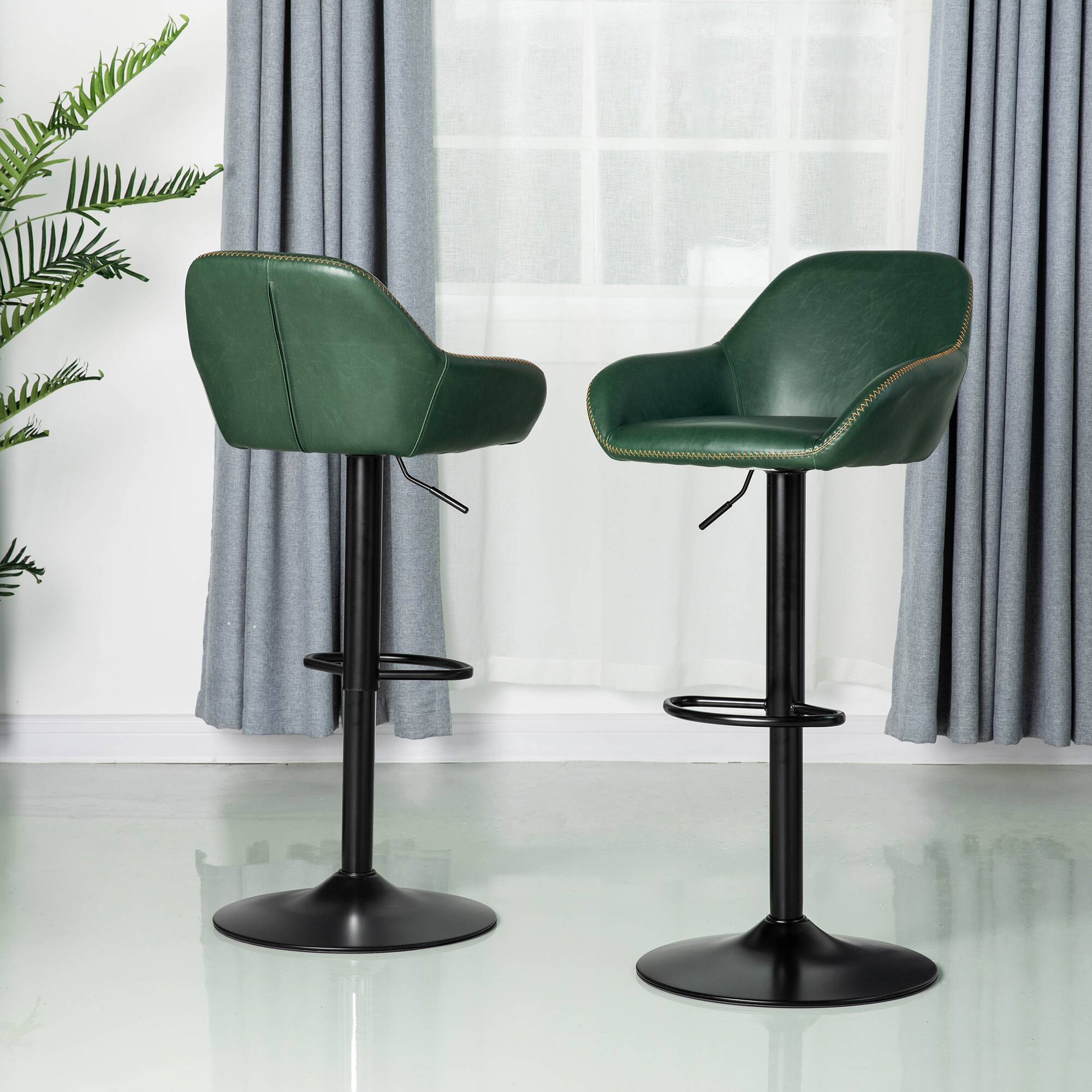 Glitzhome® Mid-Century Leatherette Gaslift Adjustable Swivel Bar Stool Set