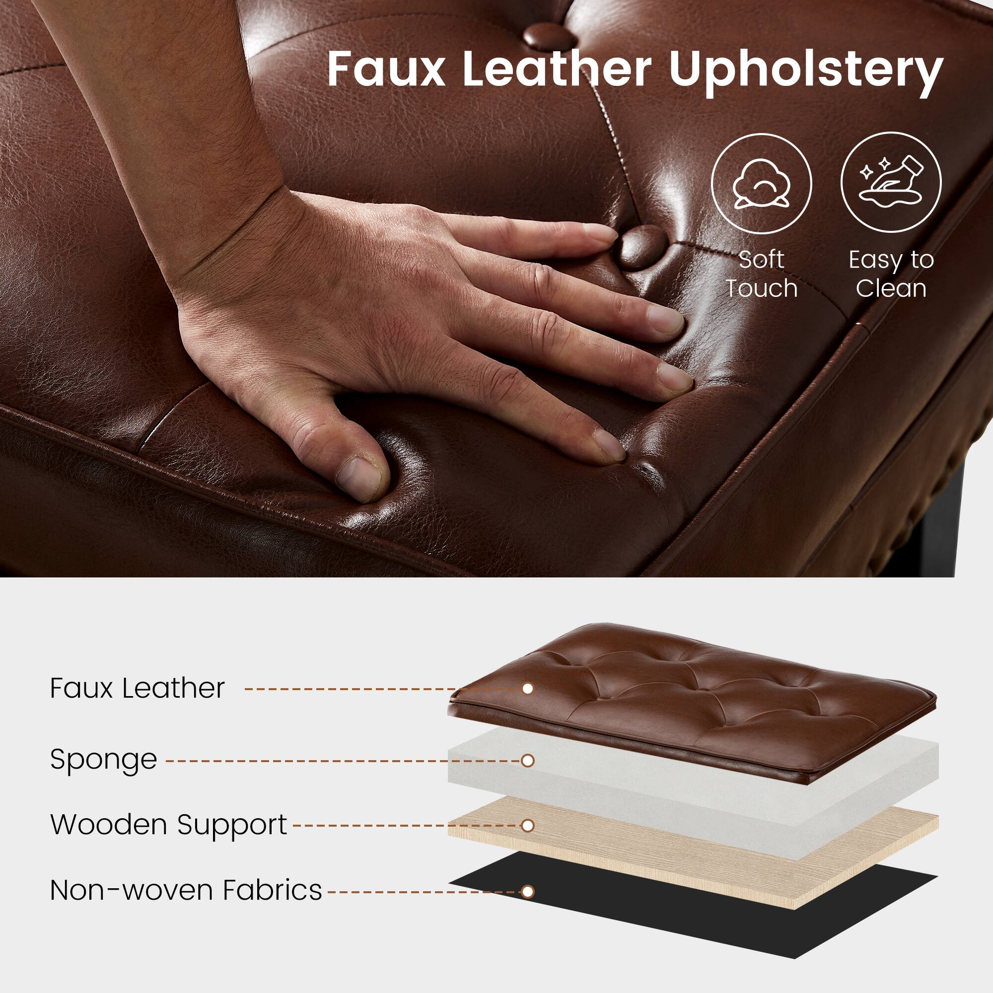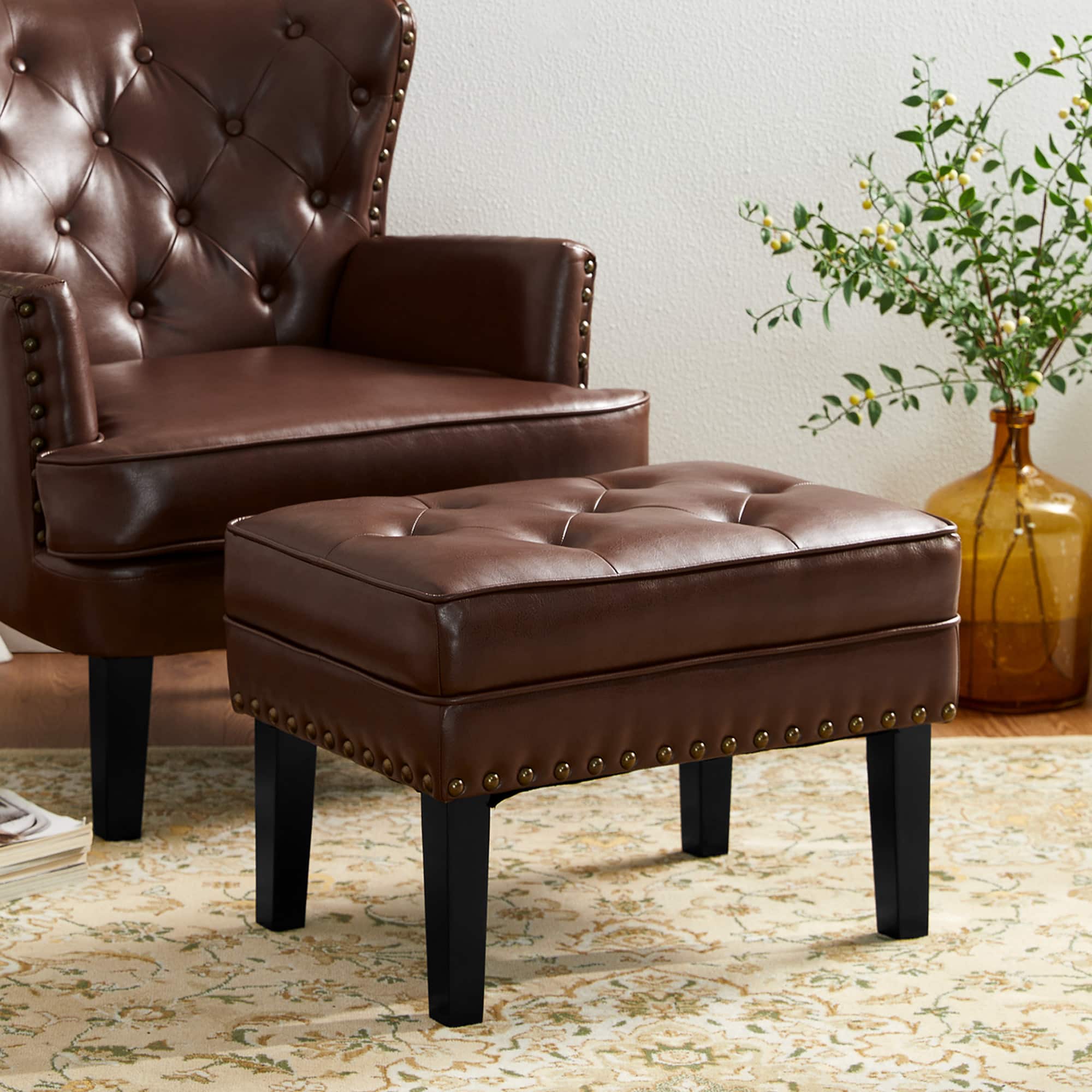 Glitzhome® Mid-Century Modern Leatherette Button-Tufted Accent Stool