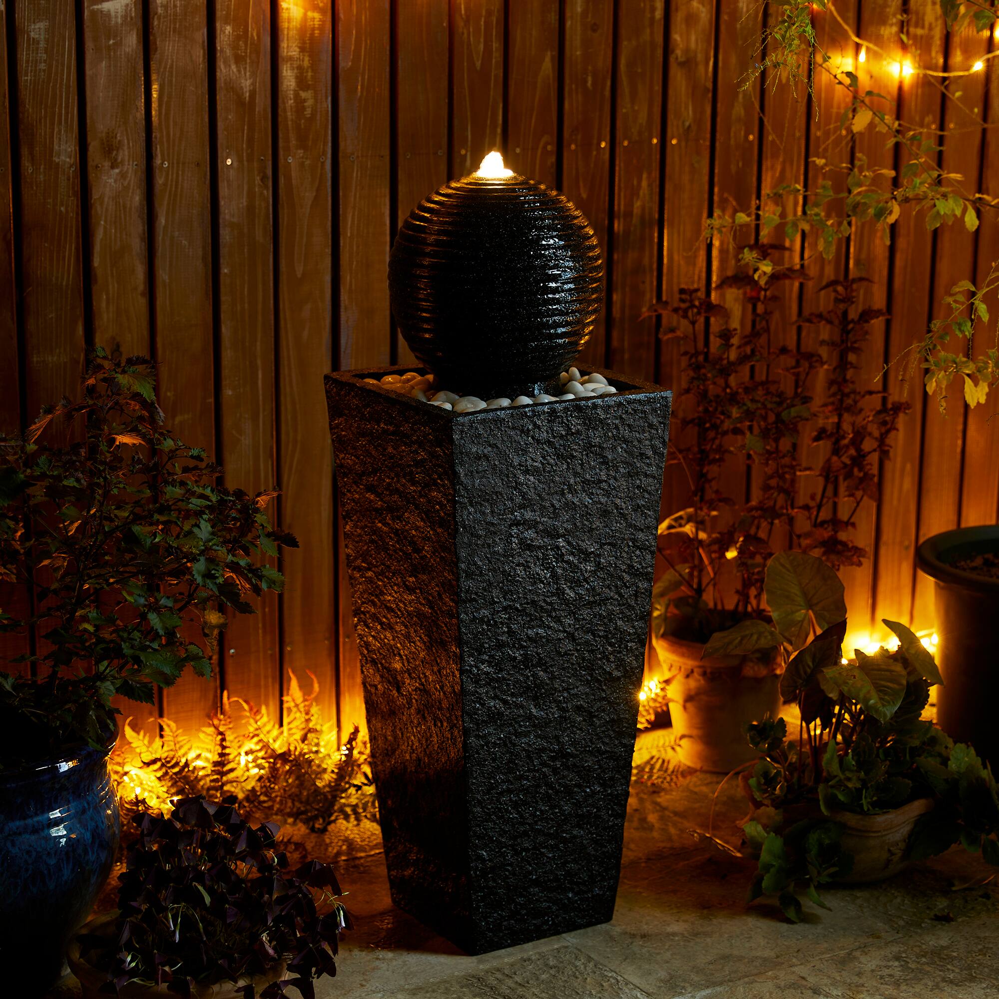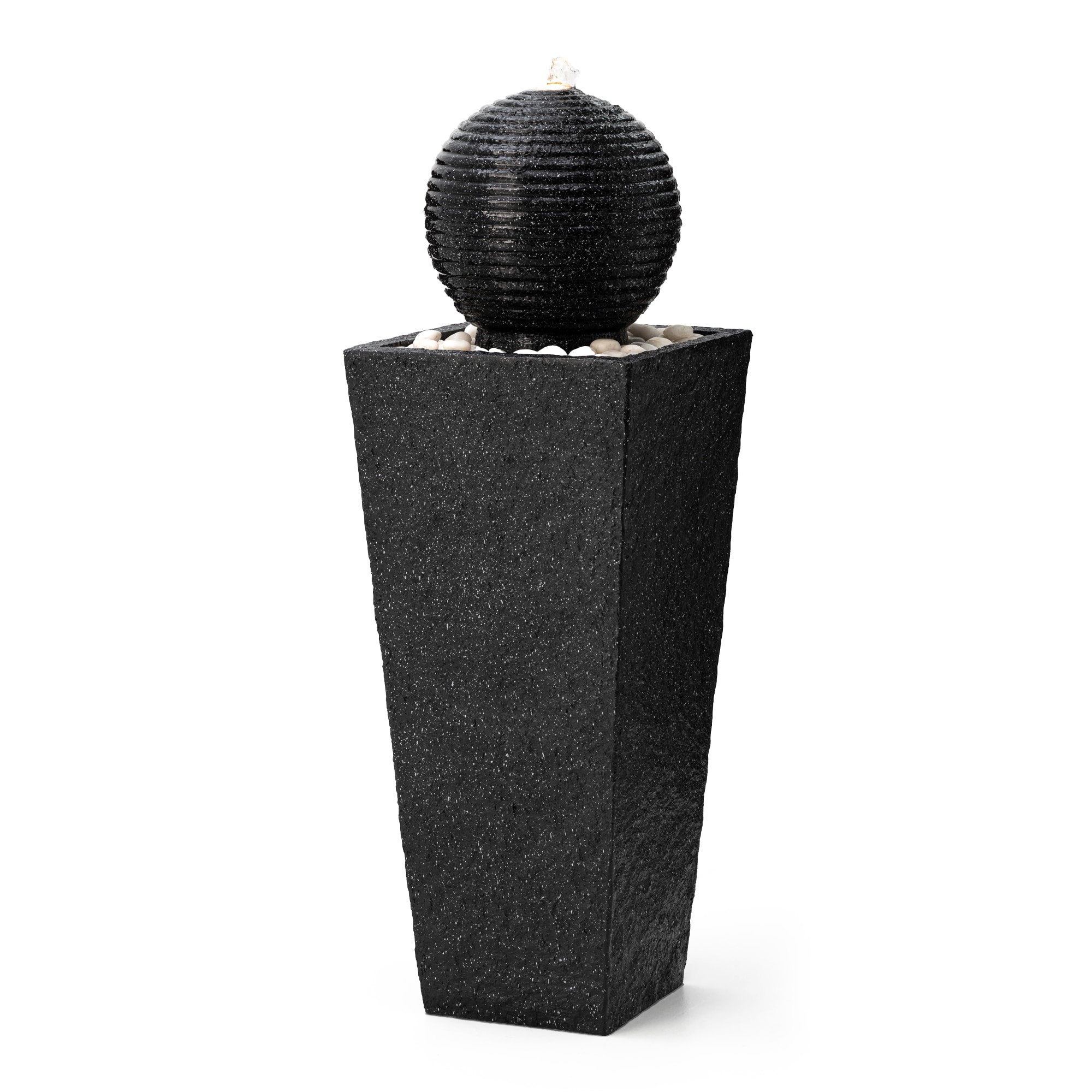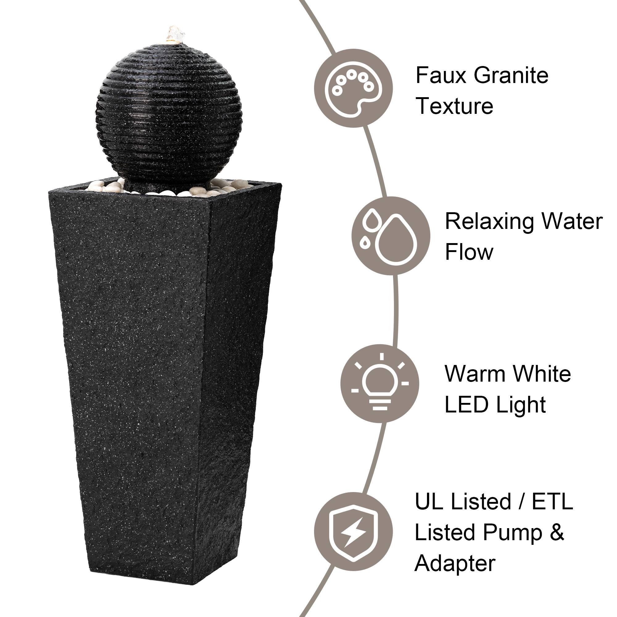 Glitzhome® Modern LED Black Geometric Pedestal & Sphere Outdoor Floor Fountain