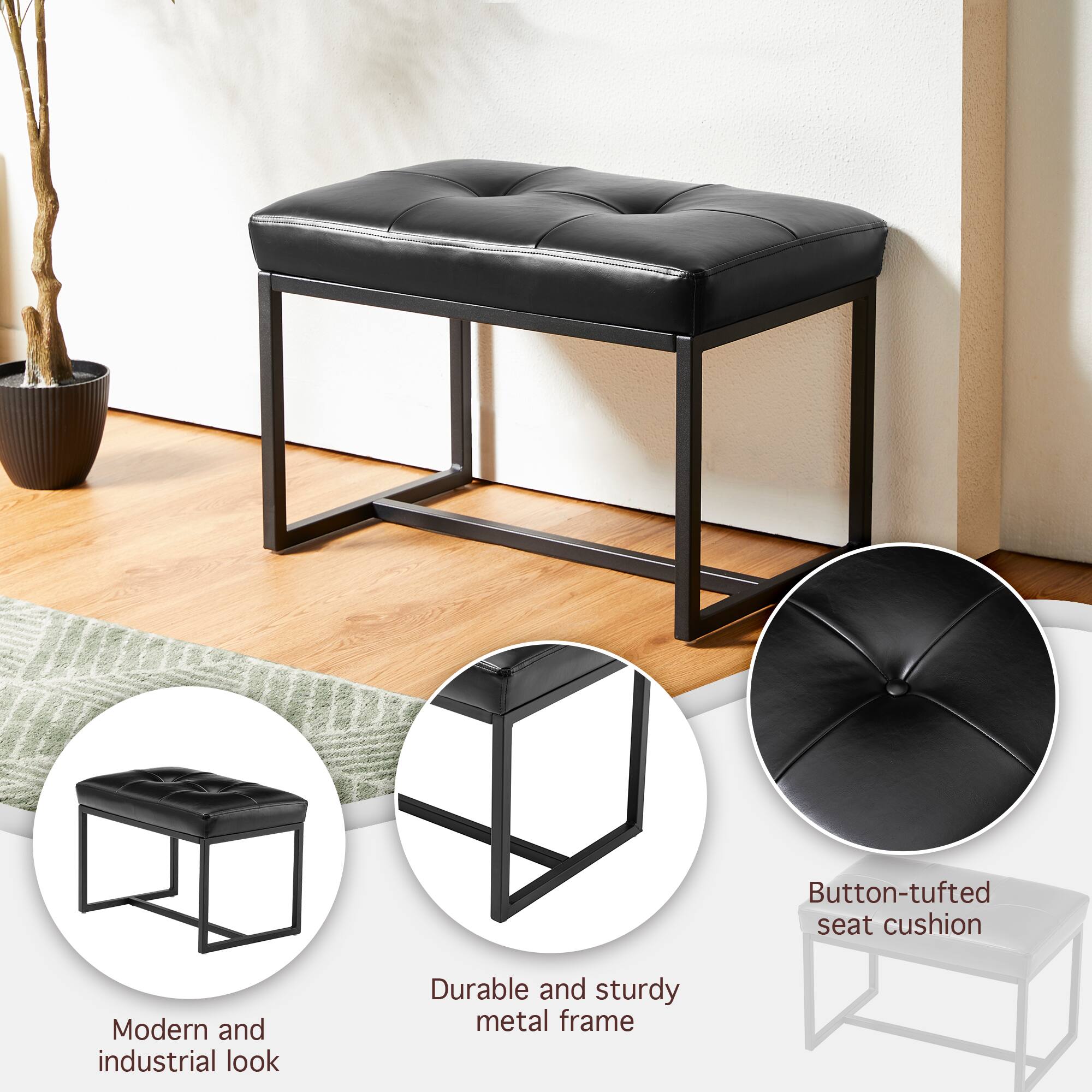 Glitzhome® Modern Thick Leatherette Accent Stool