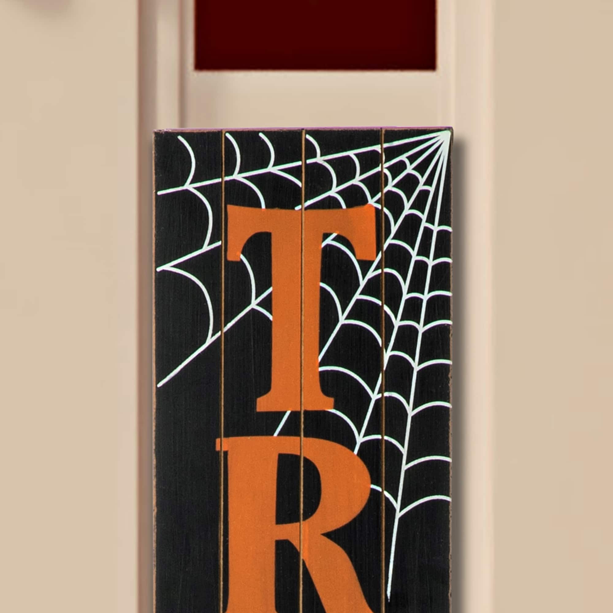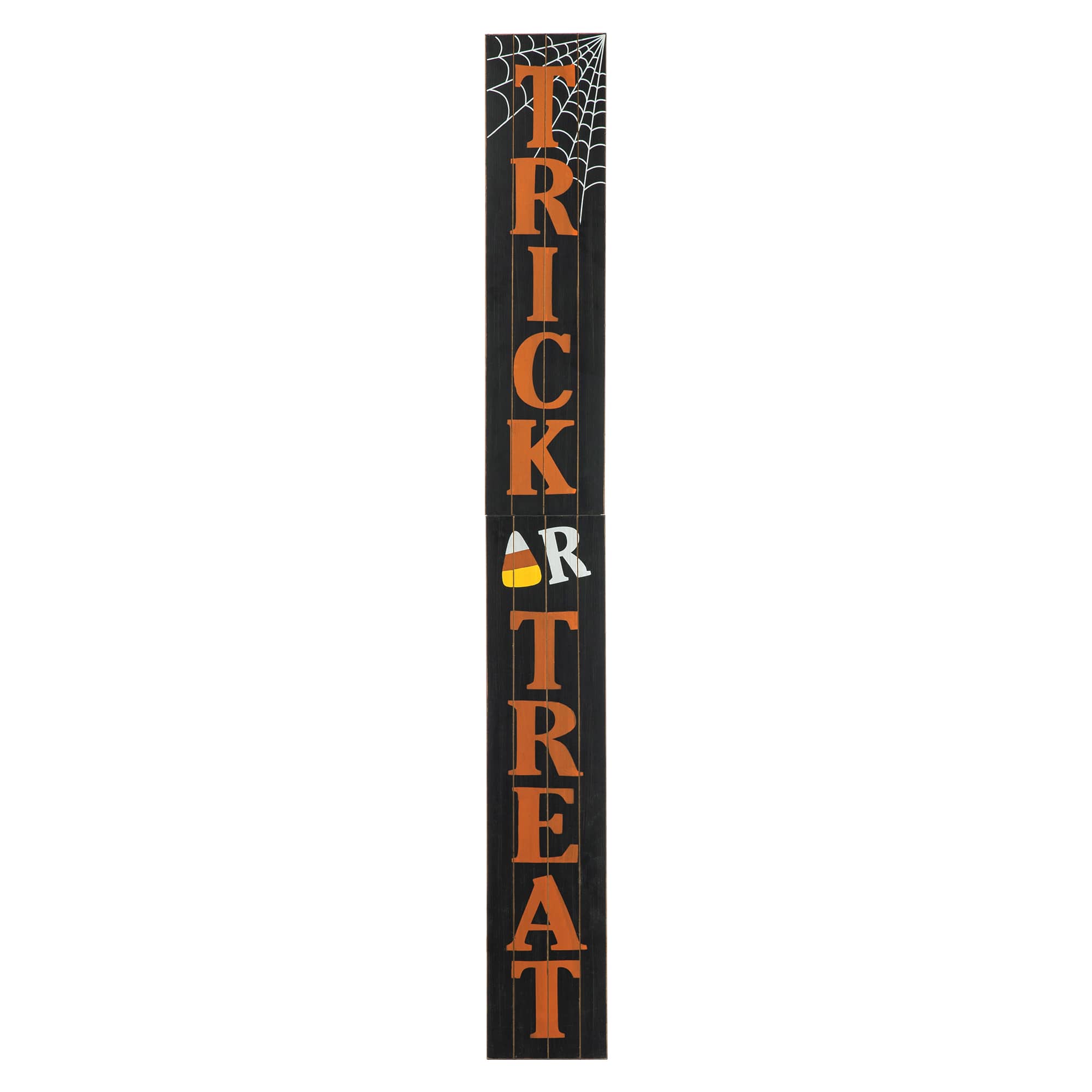 Glitzhome® Orange & Black Wooden Trick or Treat Porch Sign