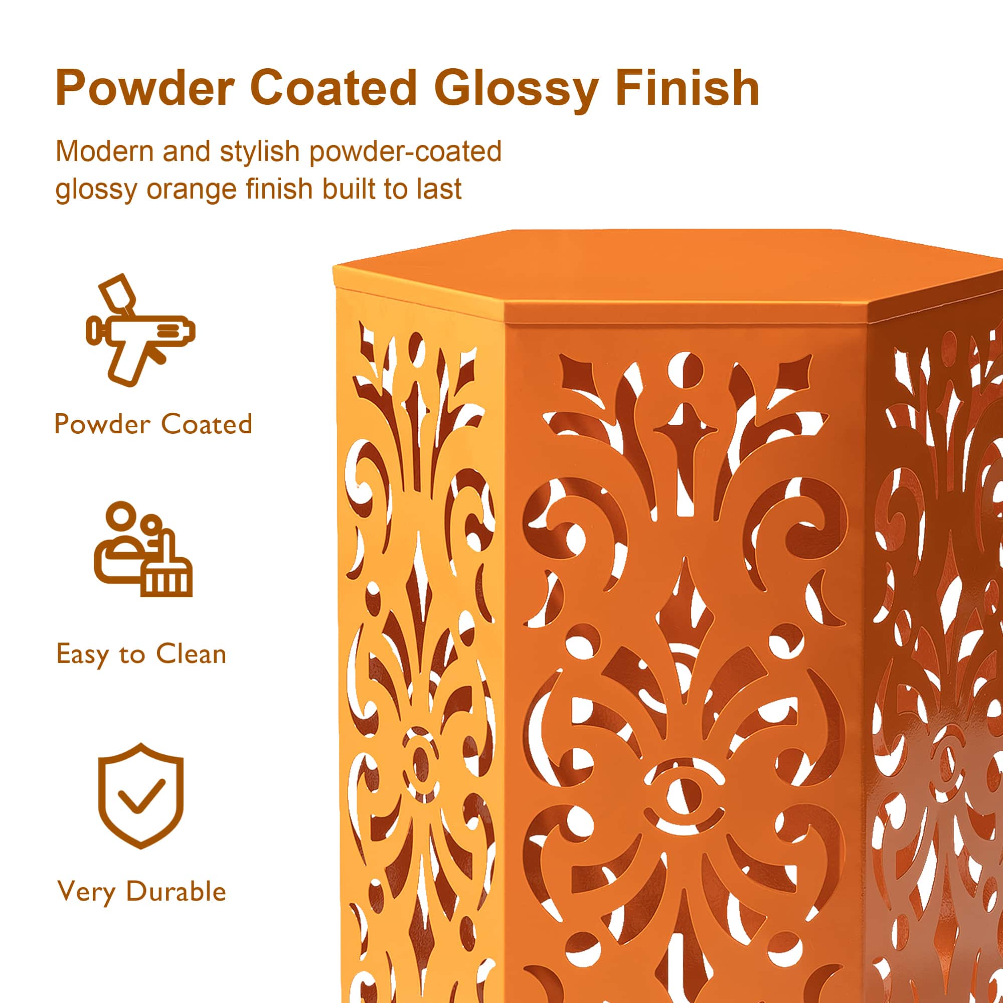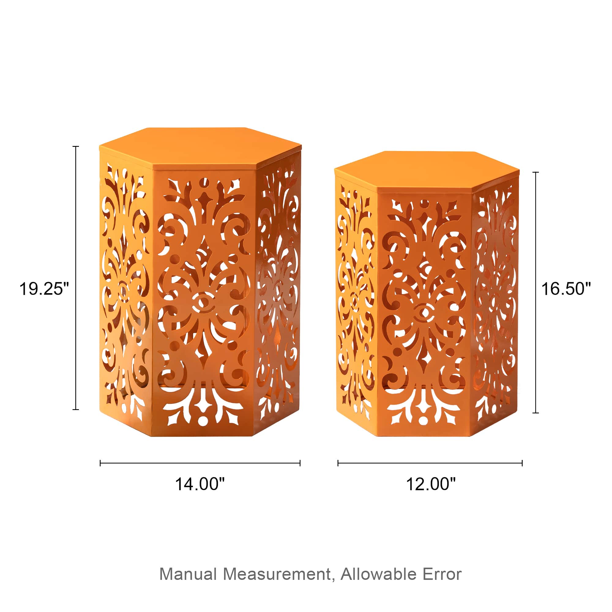 Glitzhome® Orange Floral Motif Hexagonal Garden Stool Set
