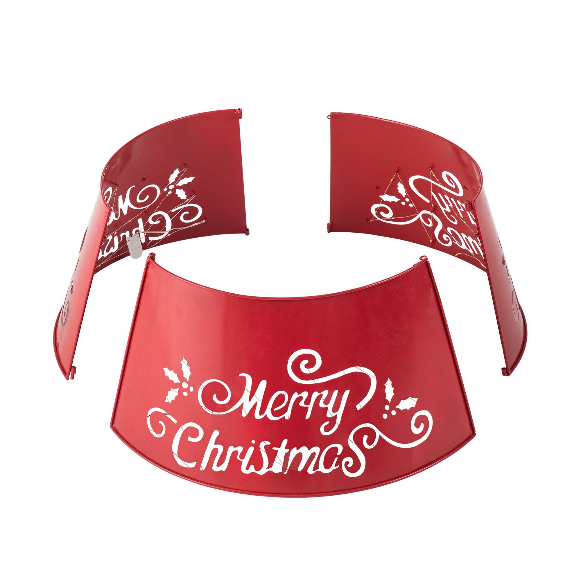Glitzhome® Red 26" LED Merry Christmas Cutout Metal Tree Collar