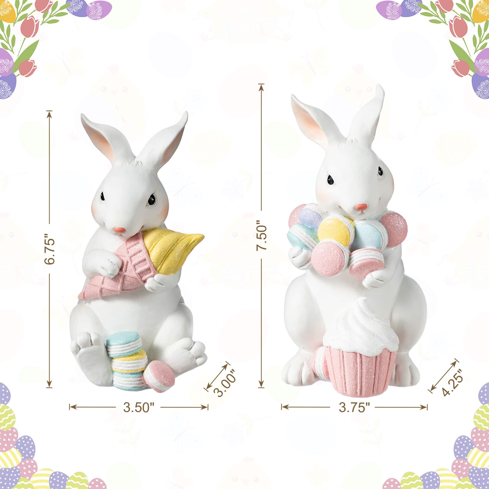Glitzhome® Set of 2 Easter Resin Bunny Holding Macaron Table Decor