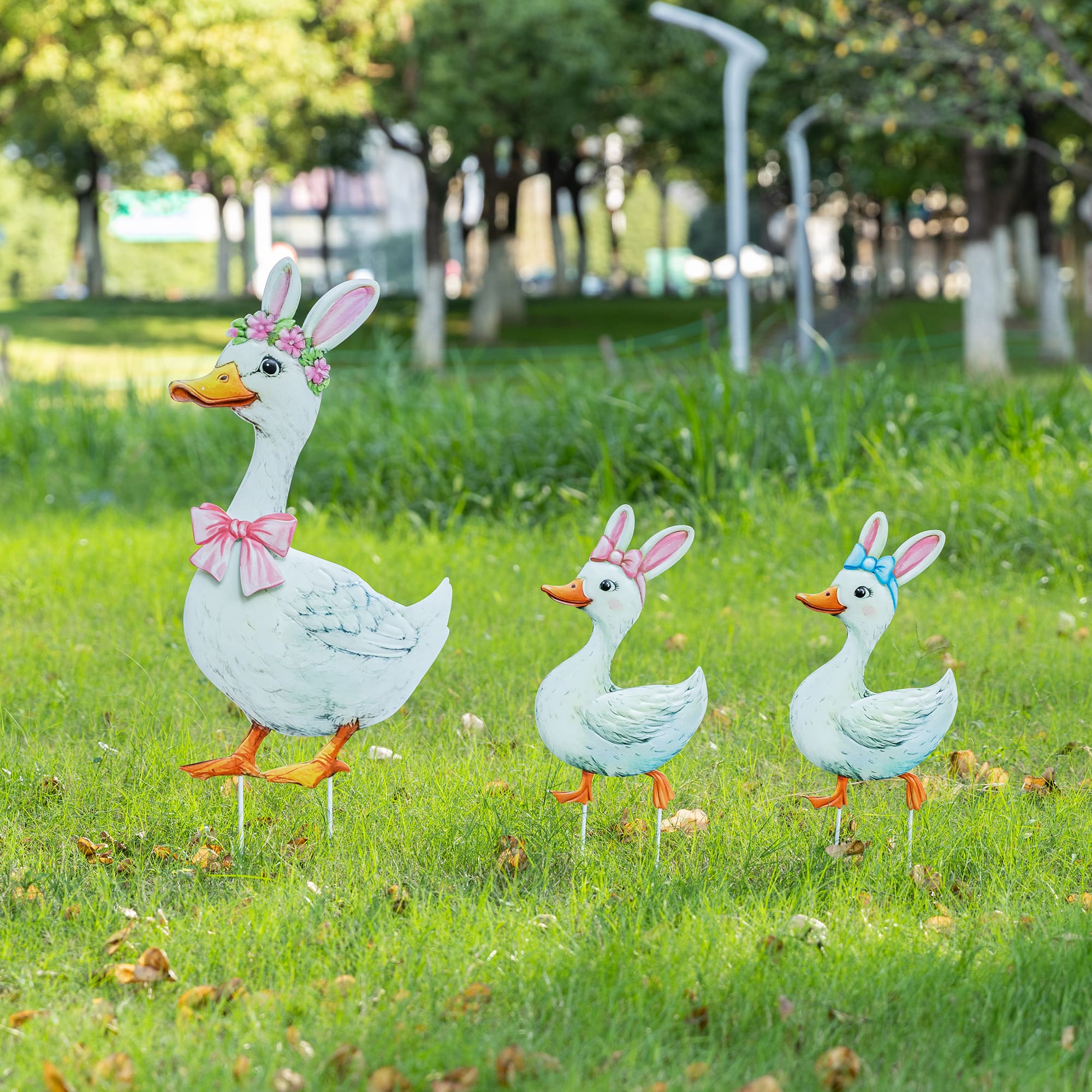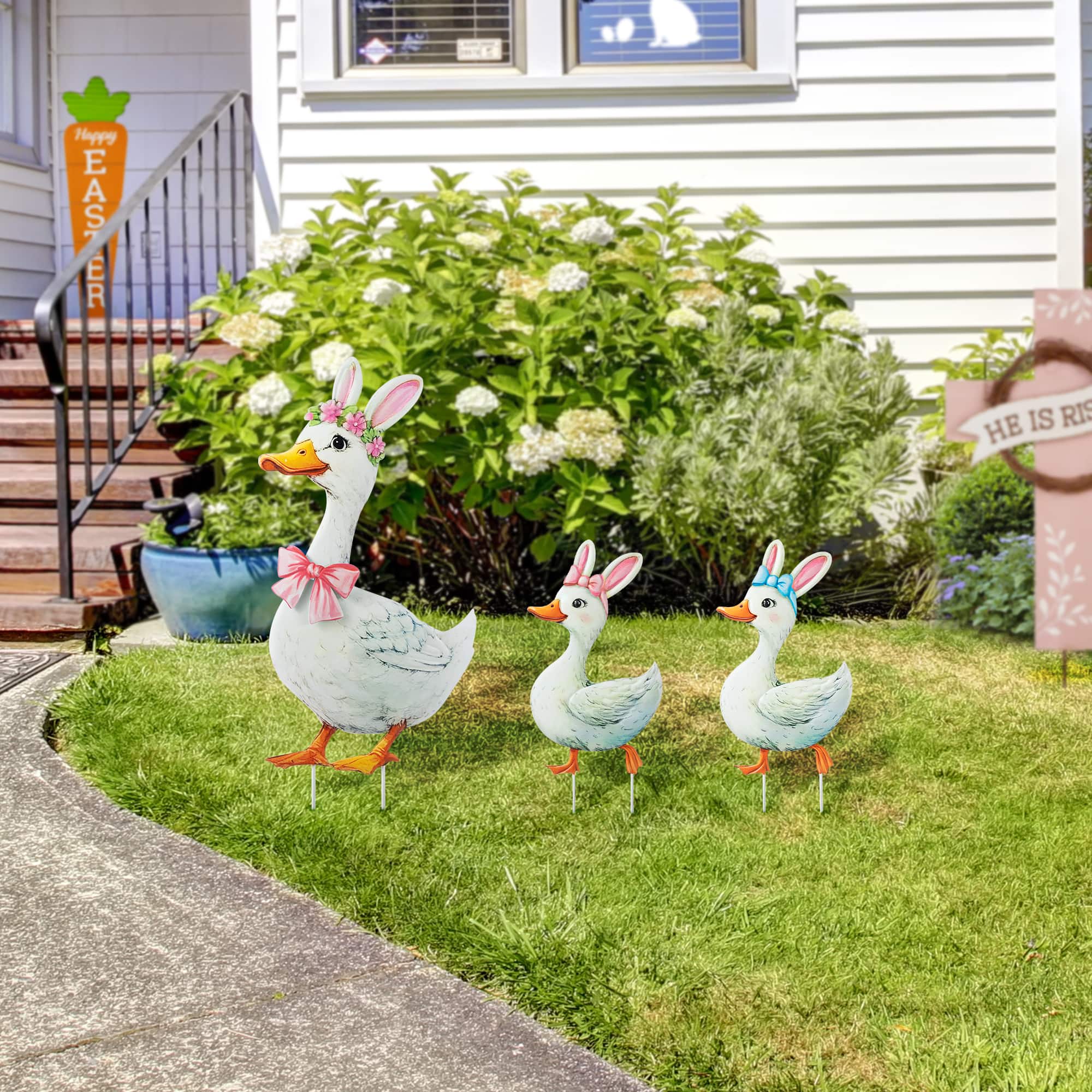 Glitzhome® Set of 3 Easter Metal Duck Family Yard Stake