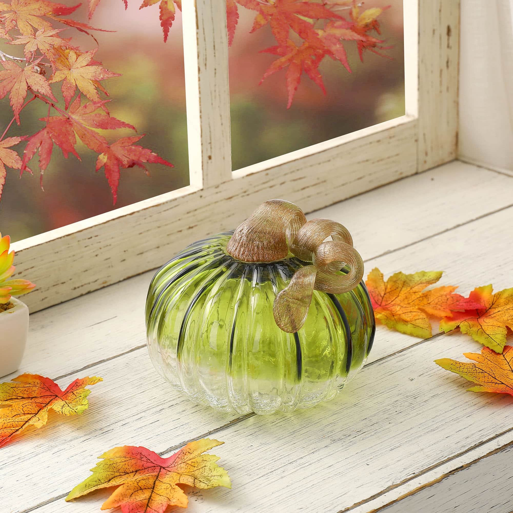 Glitzhome® Short Crackle Glass Pumpkin, Green
