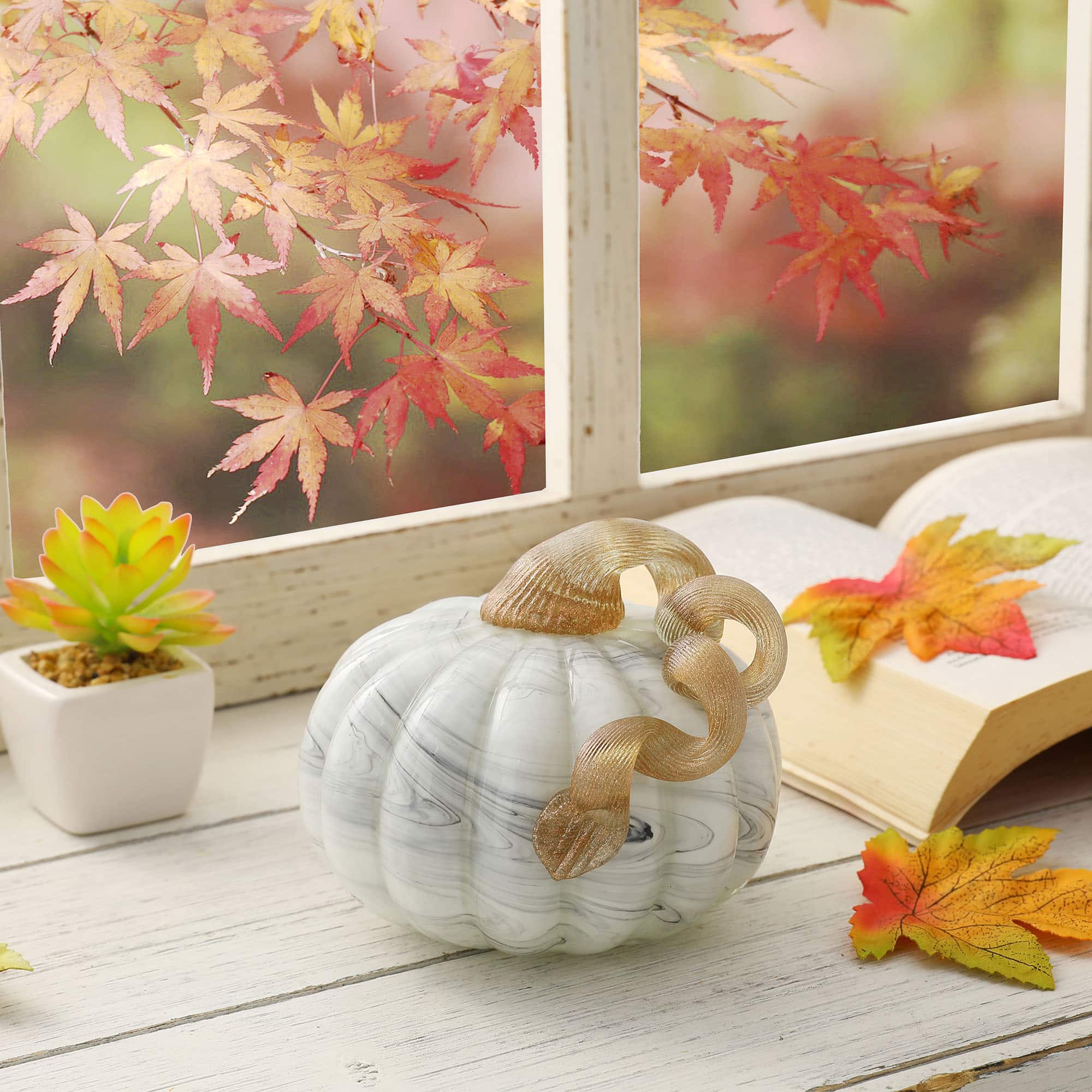 Glitzhome® Small Marble Glass Pumpkin, Gray