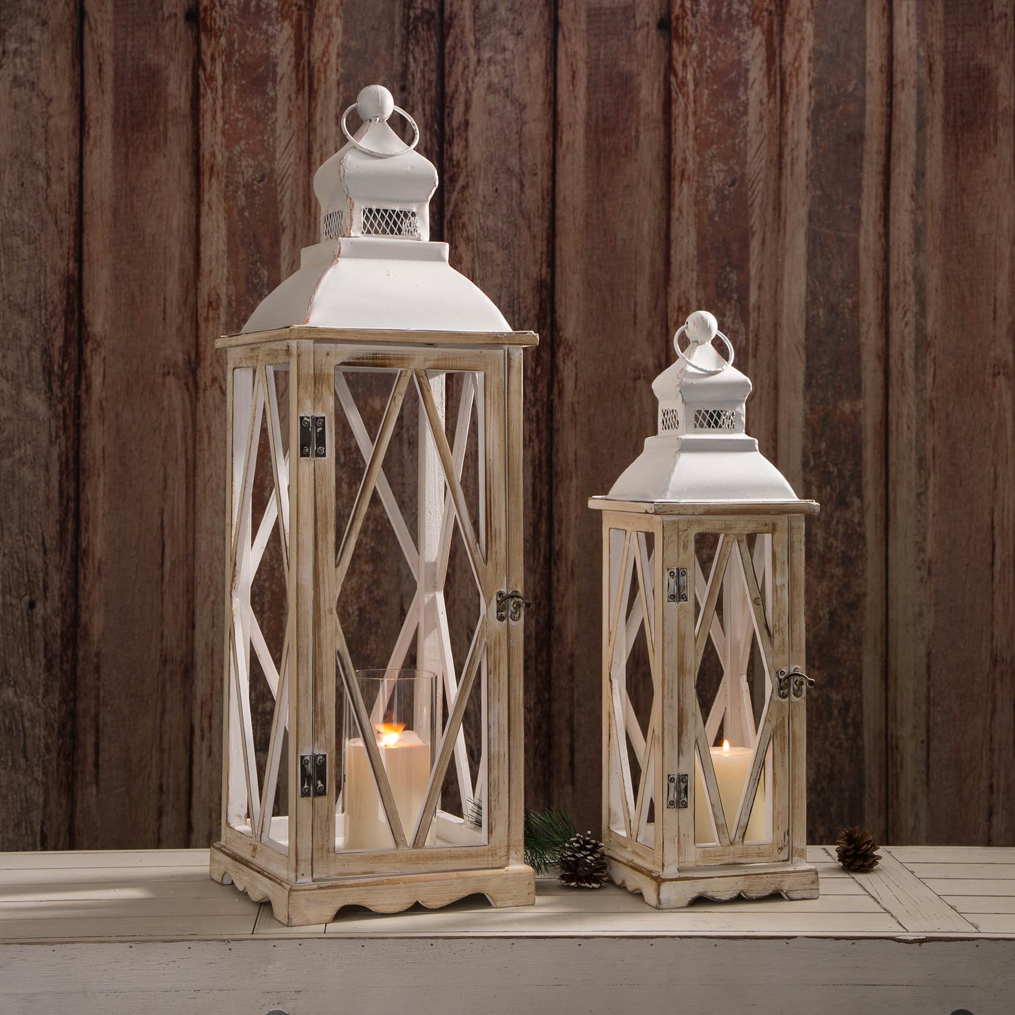 Glitzhome® White Farmhouse Wood & Metal Lantern Set
