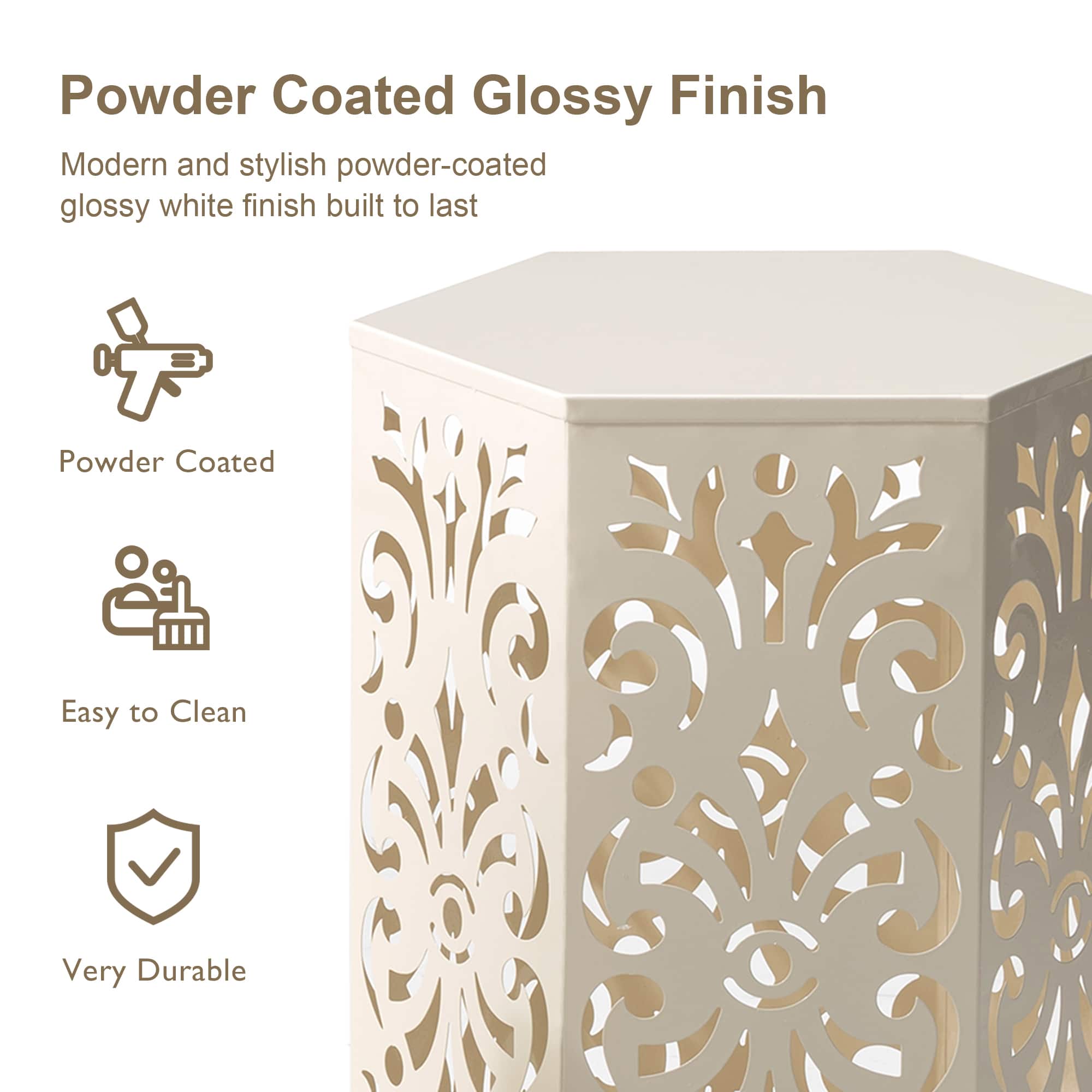 Glitzhome® White Floral Motif Hexagonal Garden Stool Set