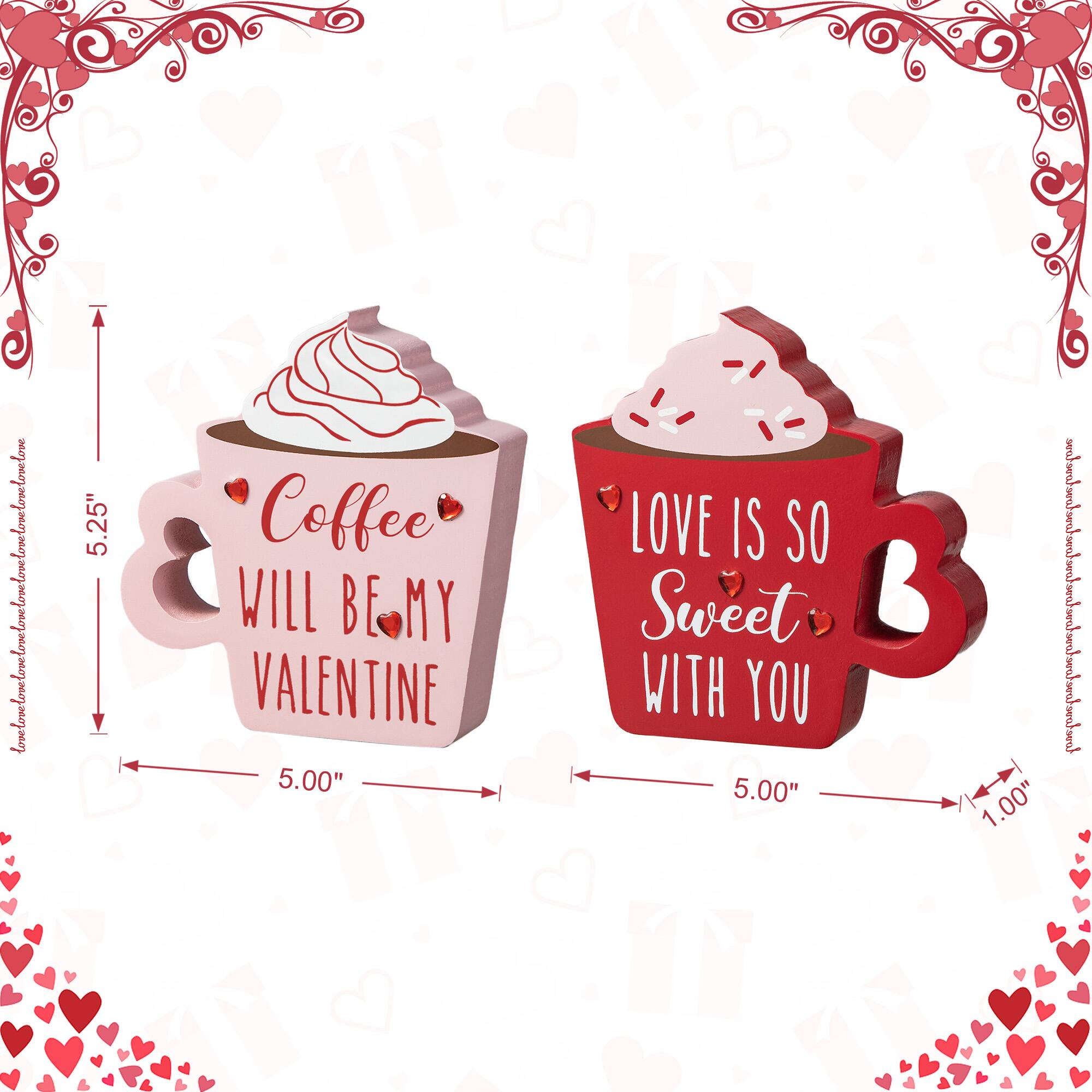 Glitzhome® Wooden Valentine's Coffee Cup Table Décor Set