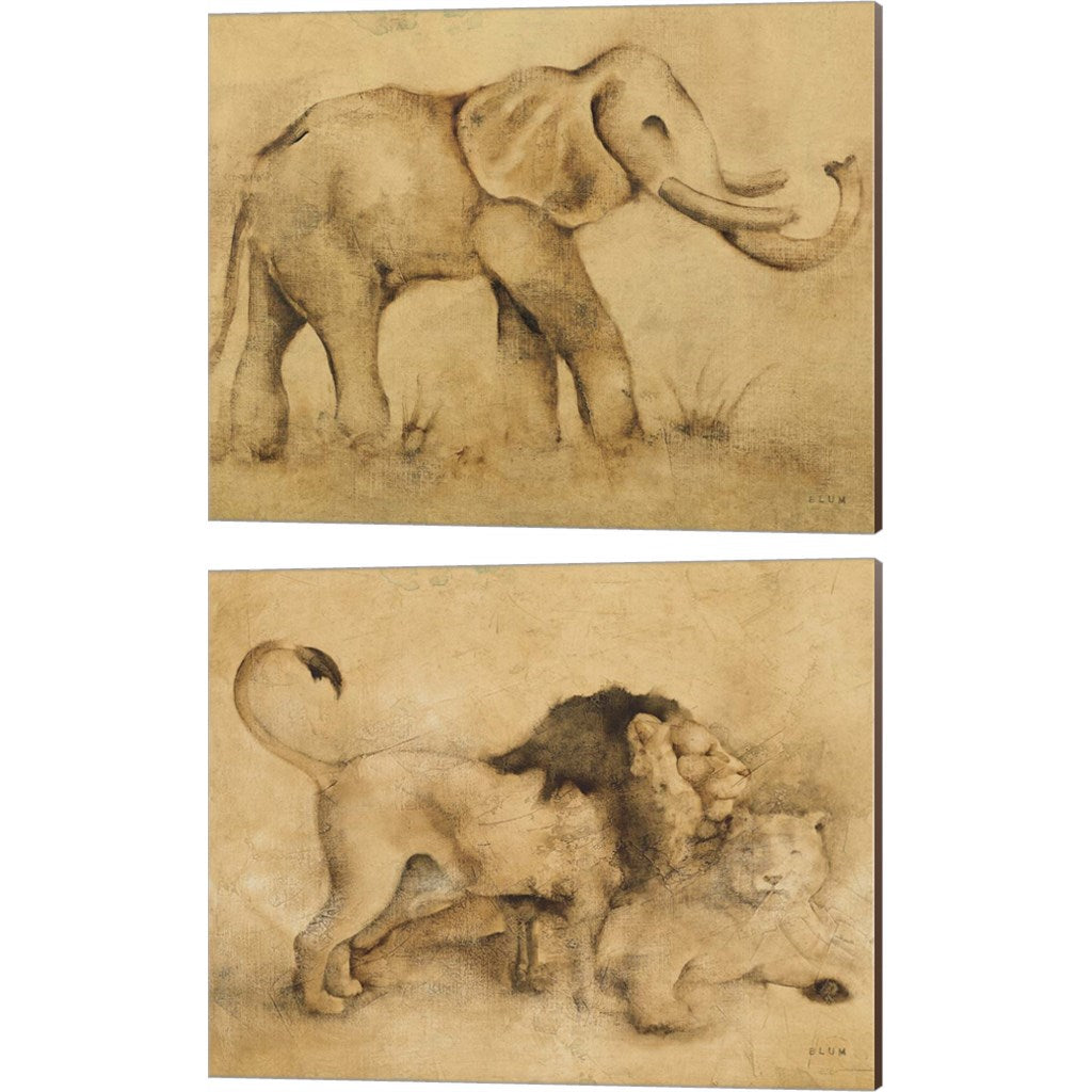 Global Elephant & Lions Light by Cheri Blum, 2 Piece Canvas Art Set 16x20 Inch
