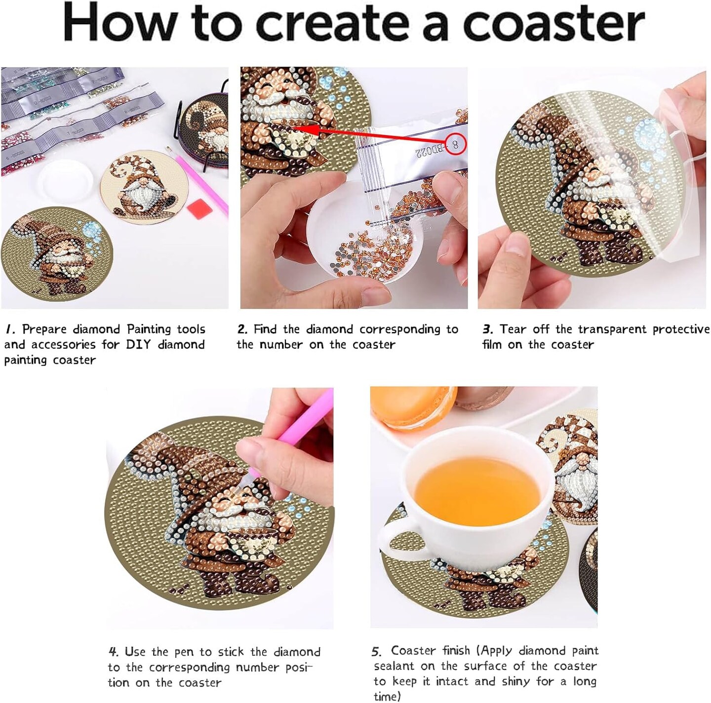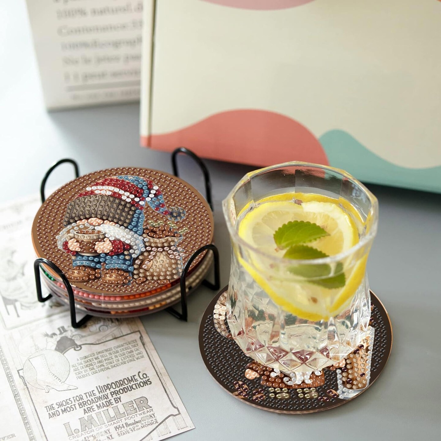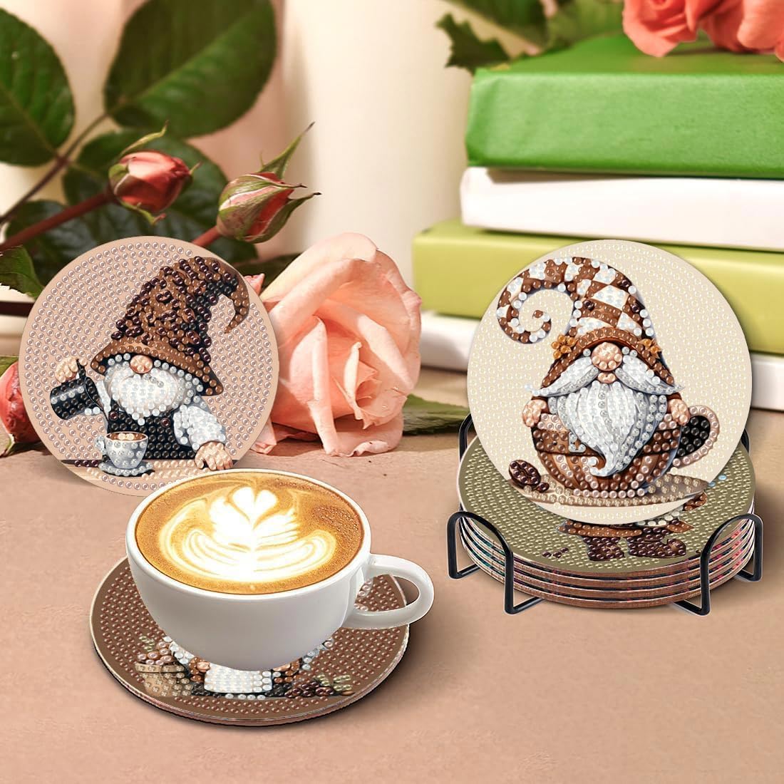 Gnome Coffee Diamond Painting Coasters Kits for Adults