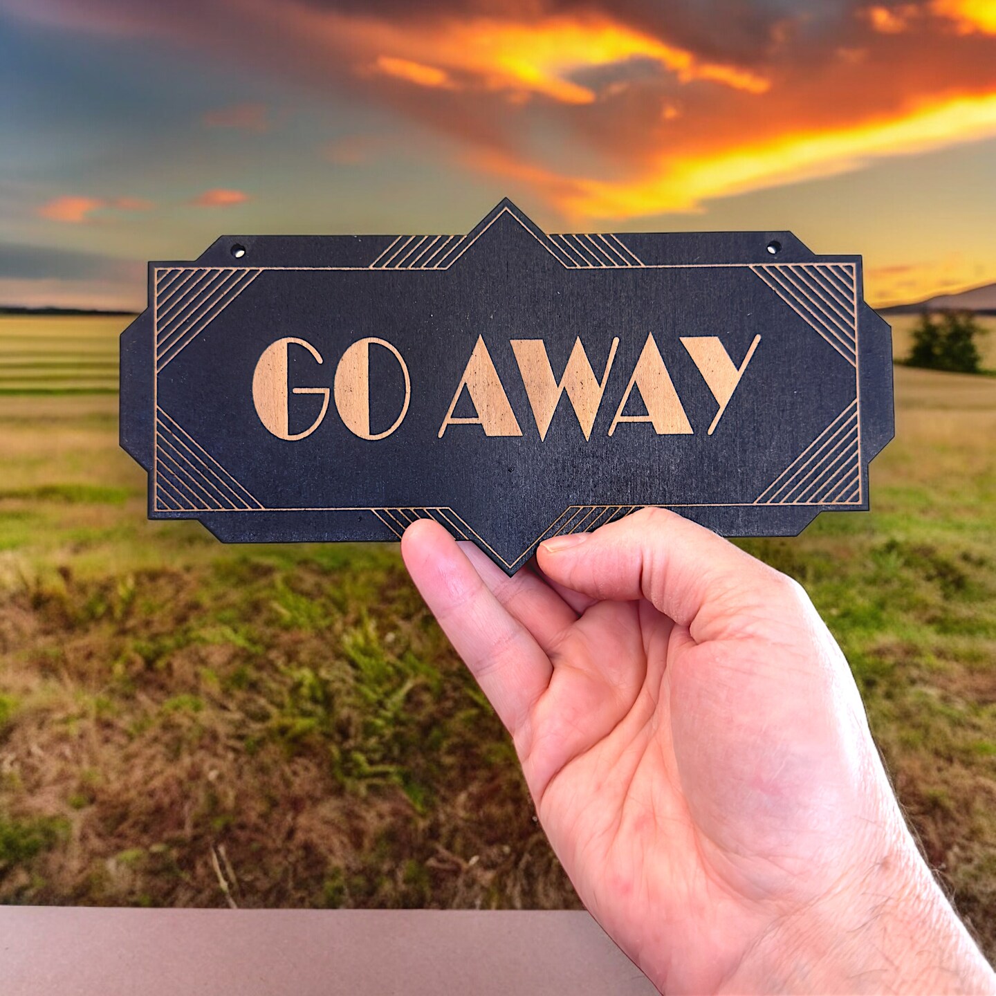 Go Away - Black Door Sign - Art Deco 4x8