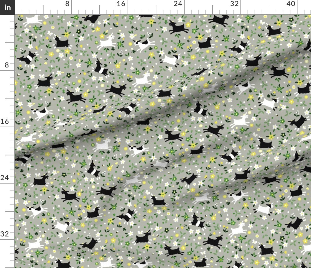 Goat, Frolic, Farm, Yellow, Green, Gray, Country, Animal, Nursery, Floral, Horns, Herd, Grazing, Chevre, Gender Neutral, Kids, Custom Printed Fabric by Spoonflower Various Fabrics by the Yard or Fat Quarter