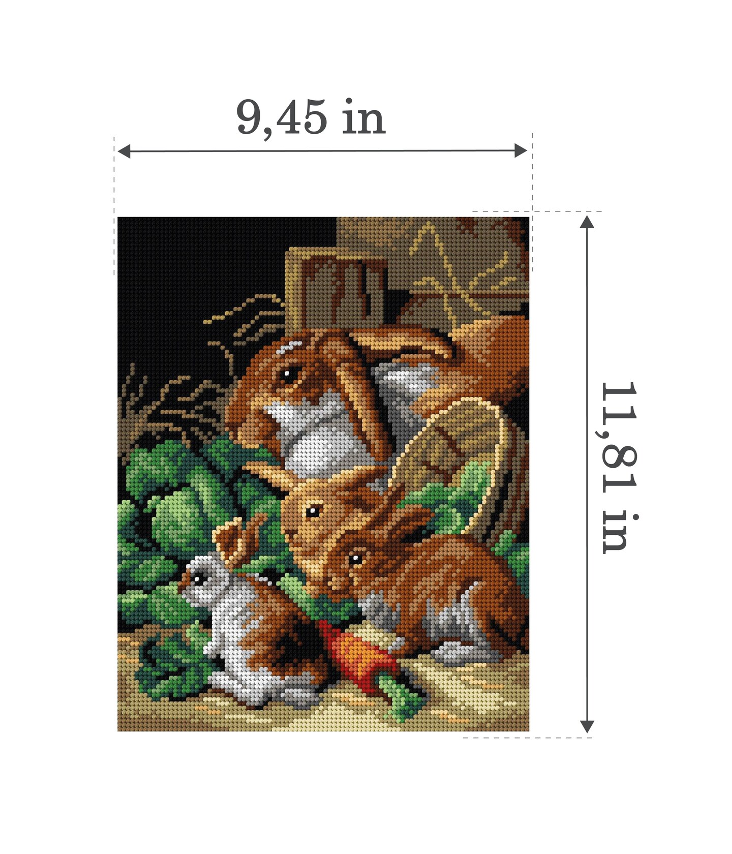Gobelin canvas for halfstitch without yarn after Alfred Richardson Barber - A Rabbit Family with Carrots and Cabbages 3215H