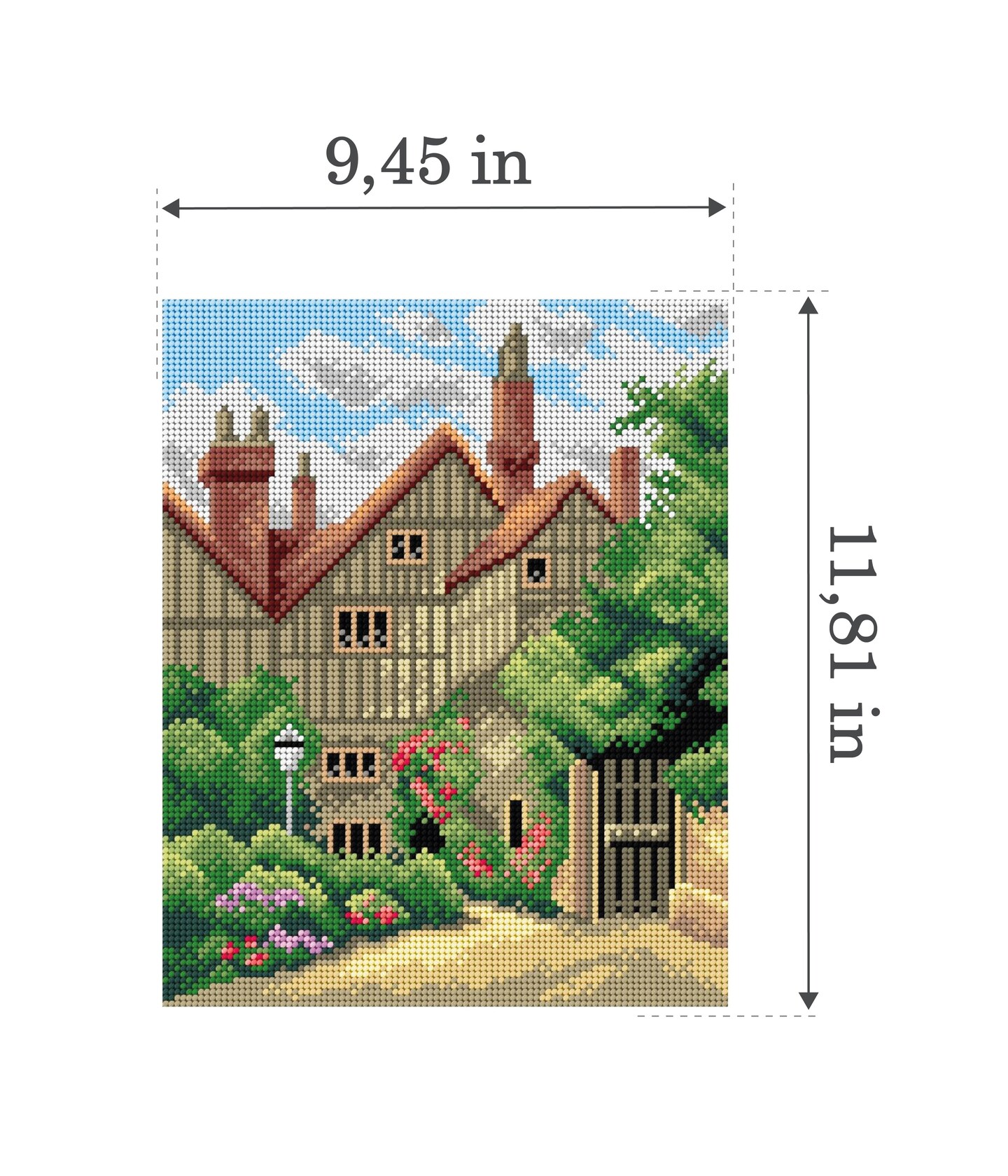 Gobelin canvas for halfstitch without yarn after Thomas Nicholson Tyndale - An Old Manor House and Garden 2855H