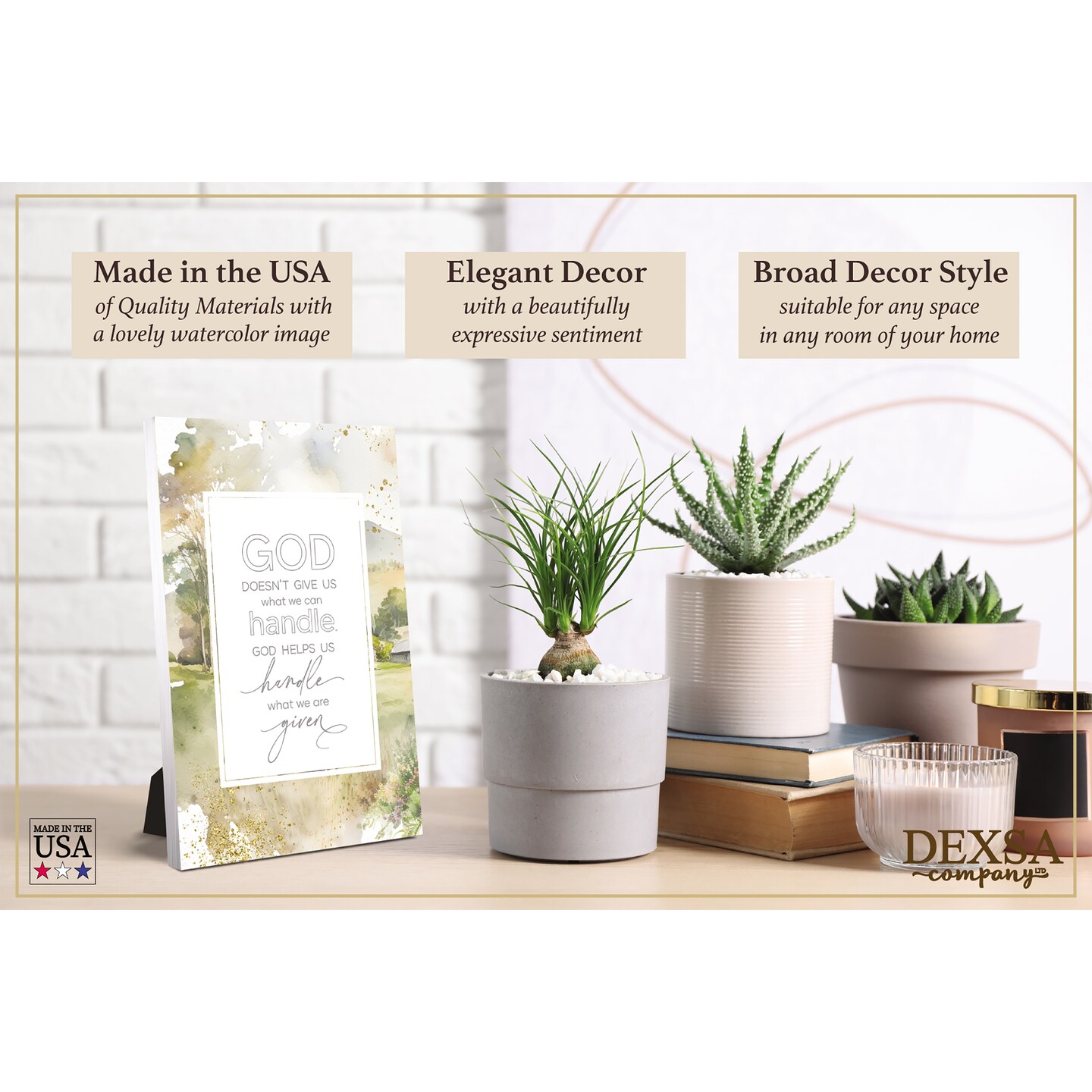 God Doesn't Give Us Wood Plaque with Easel and Hook Wall Tabletop Art - 6 inches x 9 inches