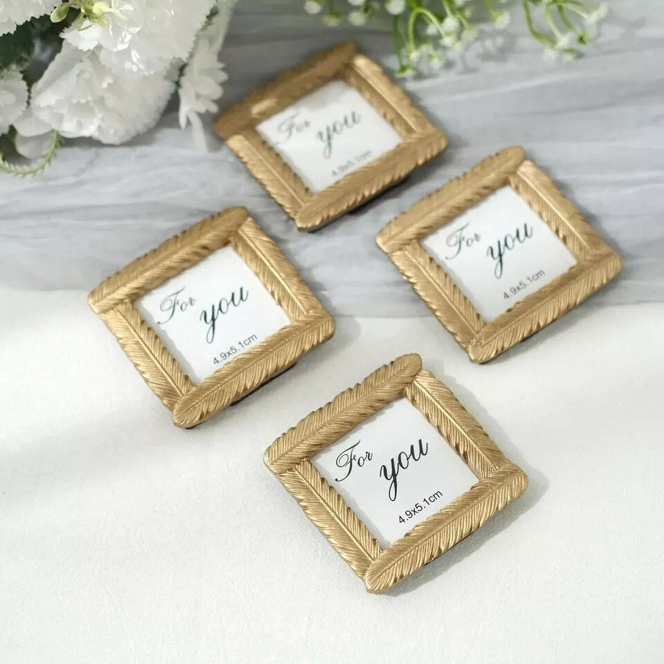 Gold 4 Mini 3" Vintage Feather Square Picture Frames Wedding Favors Party Event