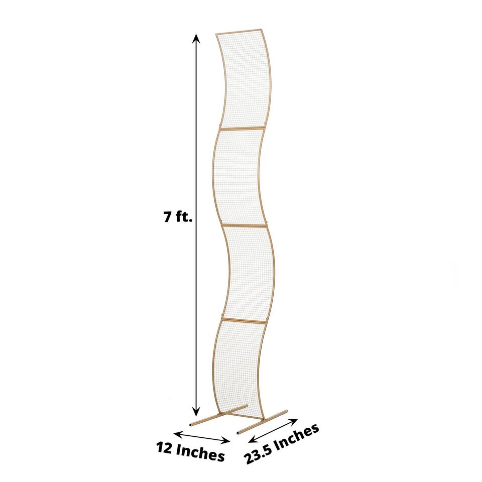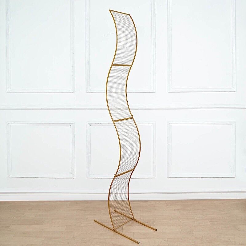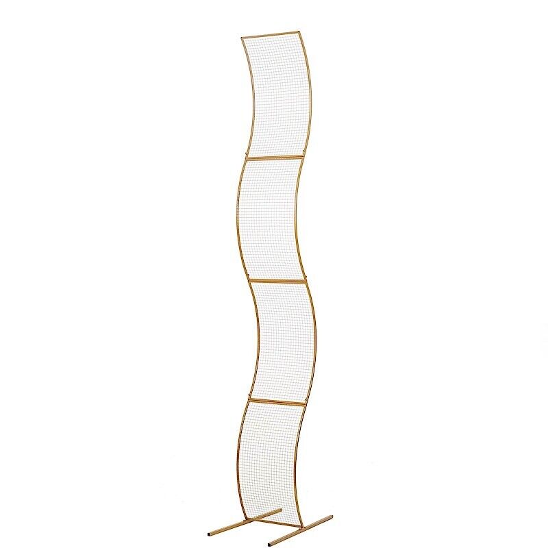Gold 7 feet Metal Floral Display Frame Wavy Grid BACKDROP STAND Arch