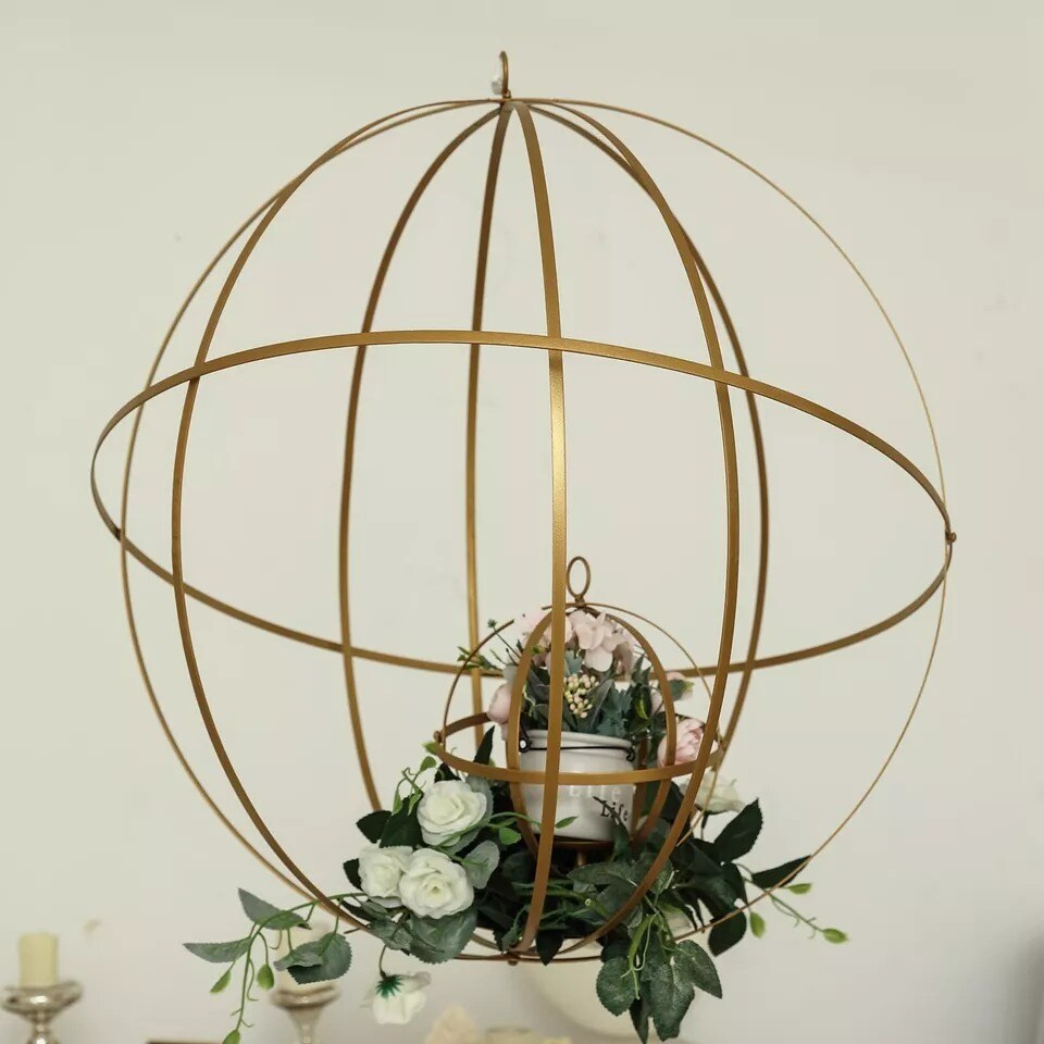 GOLD 8" Globe Ring Candle Holder Metal Lantern Wedding Party