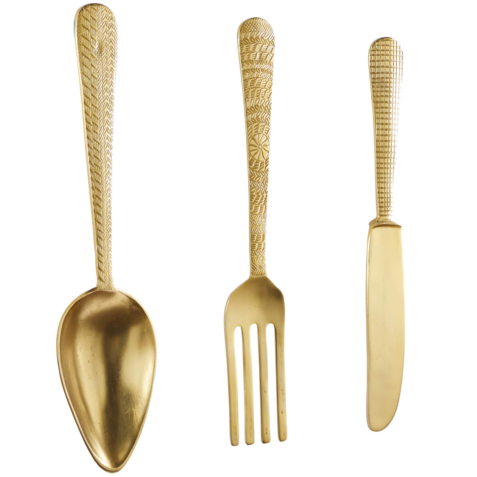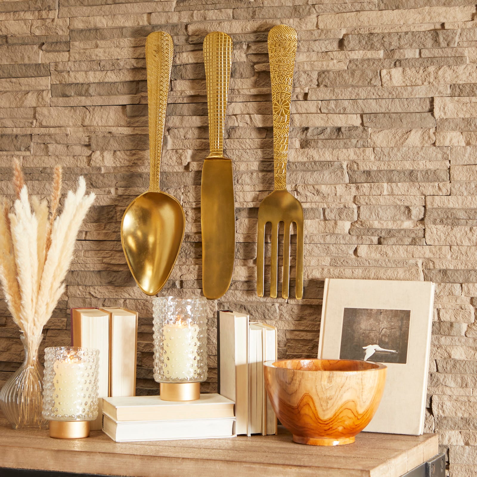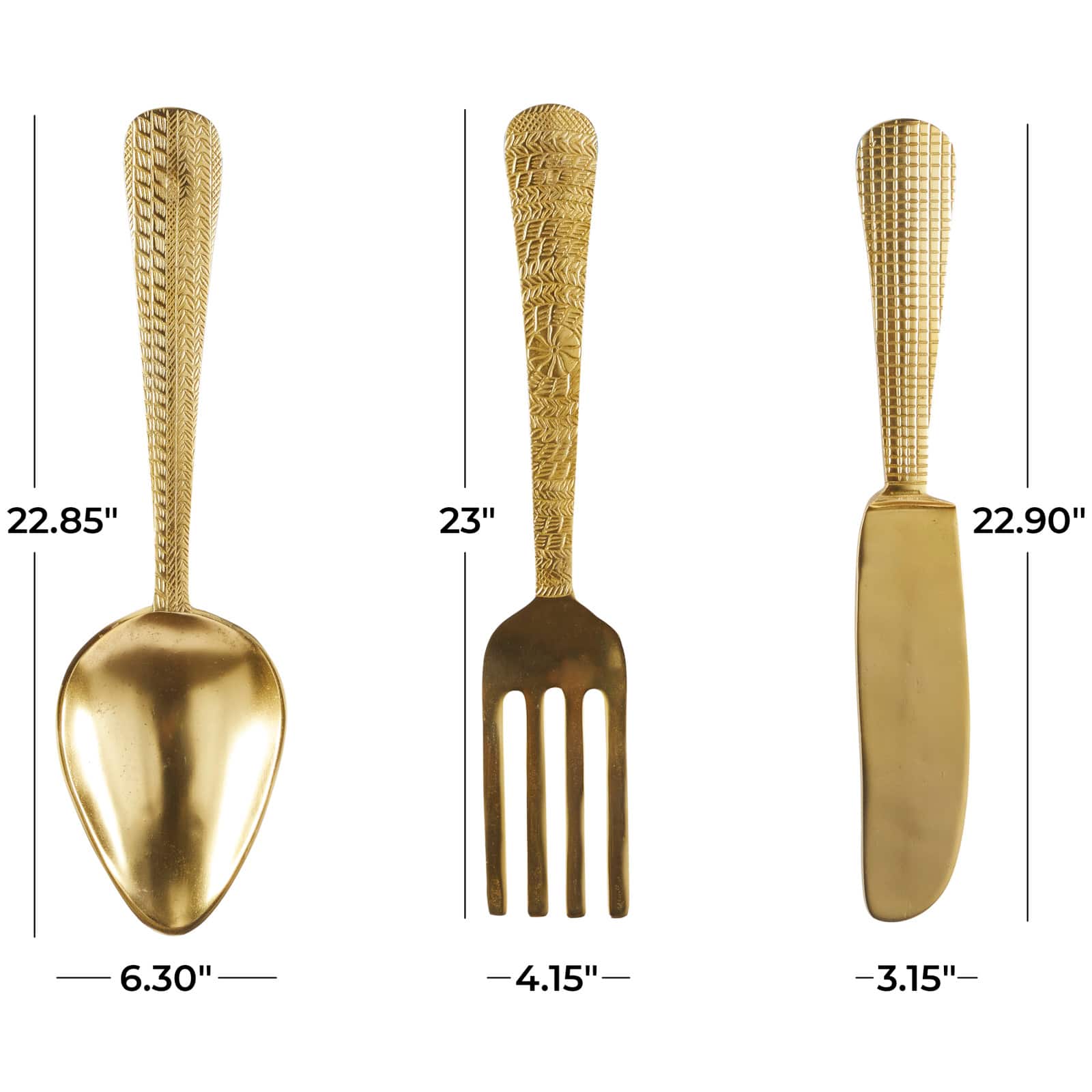 Gold Aluminum Knife, Spoon and Fork Utensils Wall Decor Set of 3 4", 23"