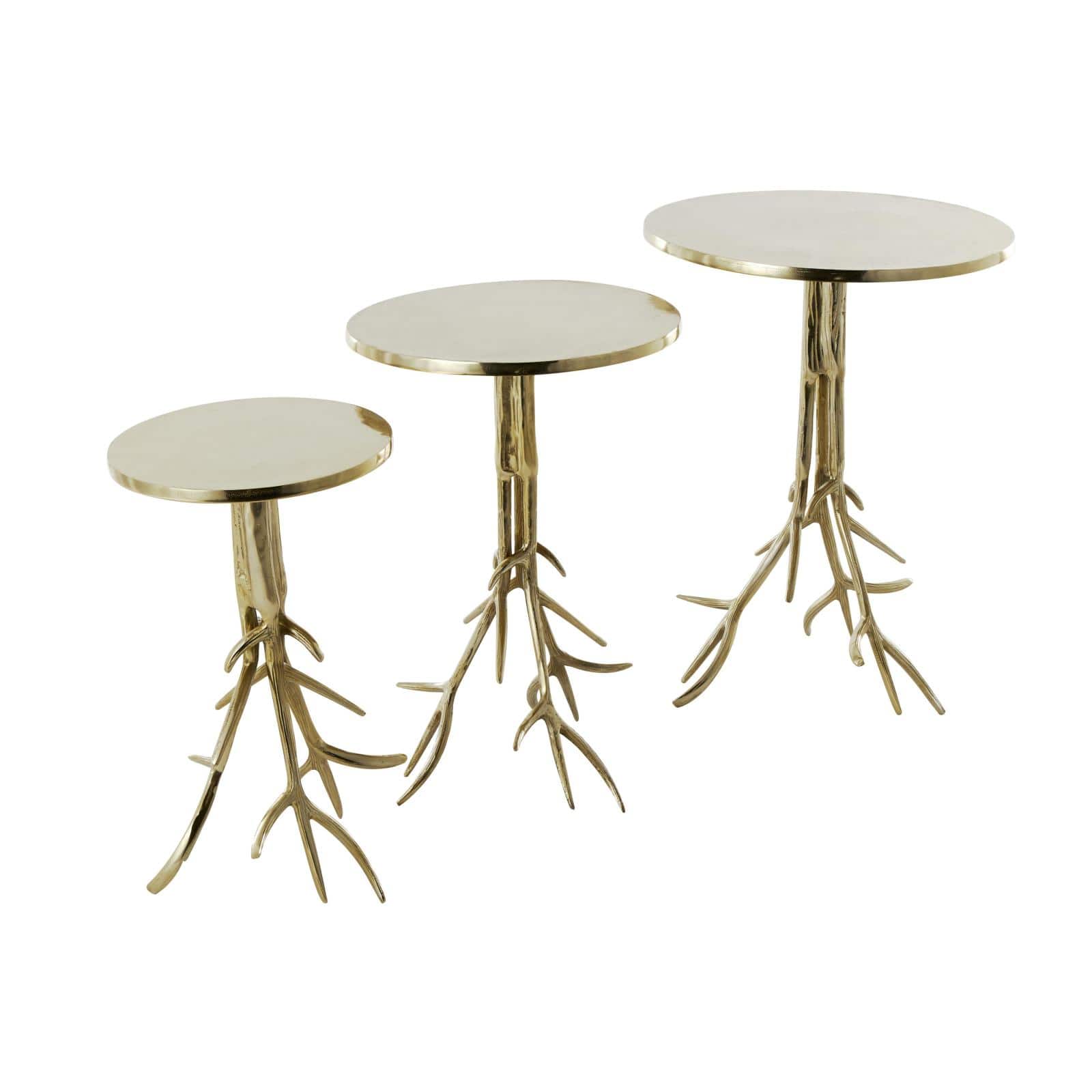Gold & Aluminum Metal Tree Accent Table with Branch Inspired Bases, 3ct.