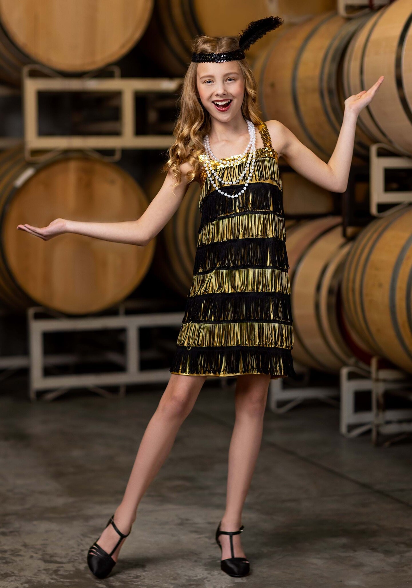 Gold and Black Fringe Flapper Costume for Kids