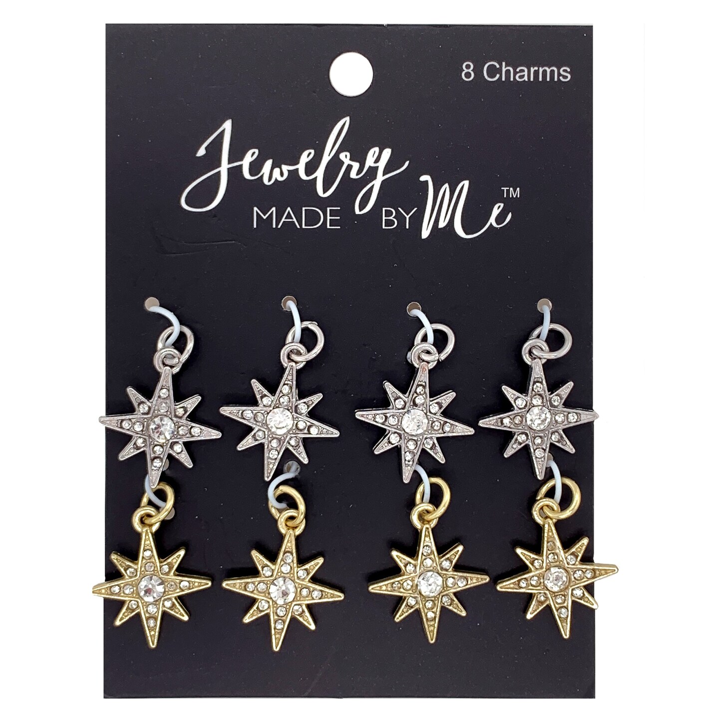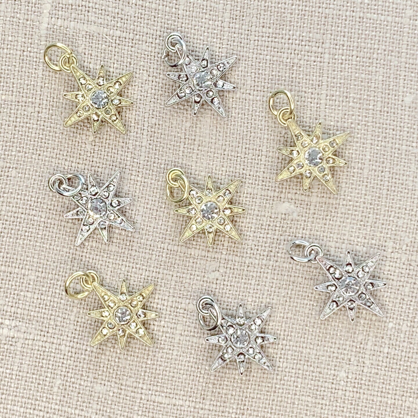 Gold and Silver Pave Crystal Starbursts Charm Set of 8