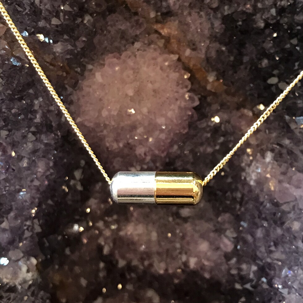 Gold And Silver Plated Little Pill Charm (K677) (1x)