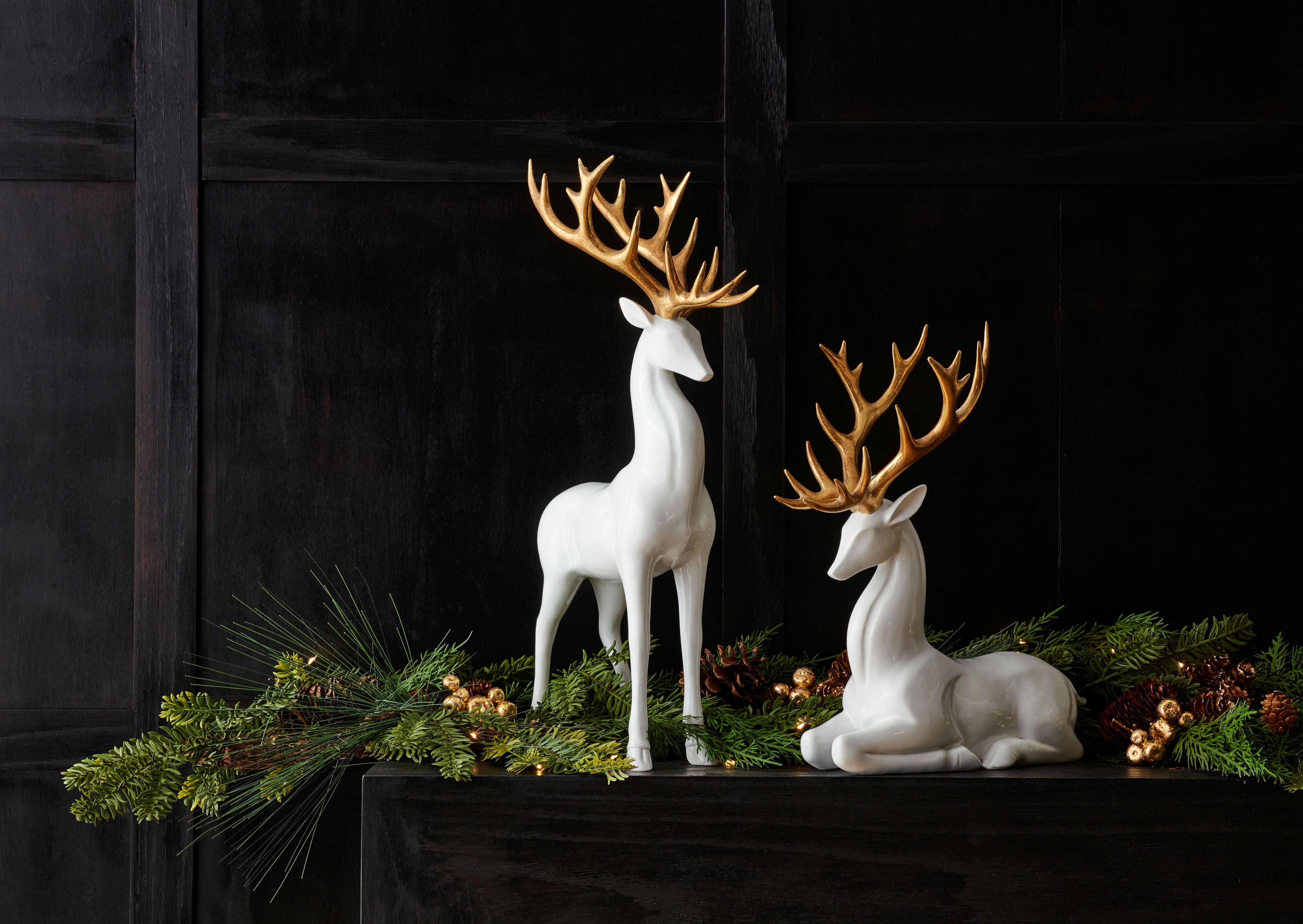 Gold and White Antler Modern Holiday Deer Decor, Set of 2