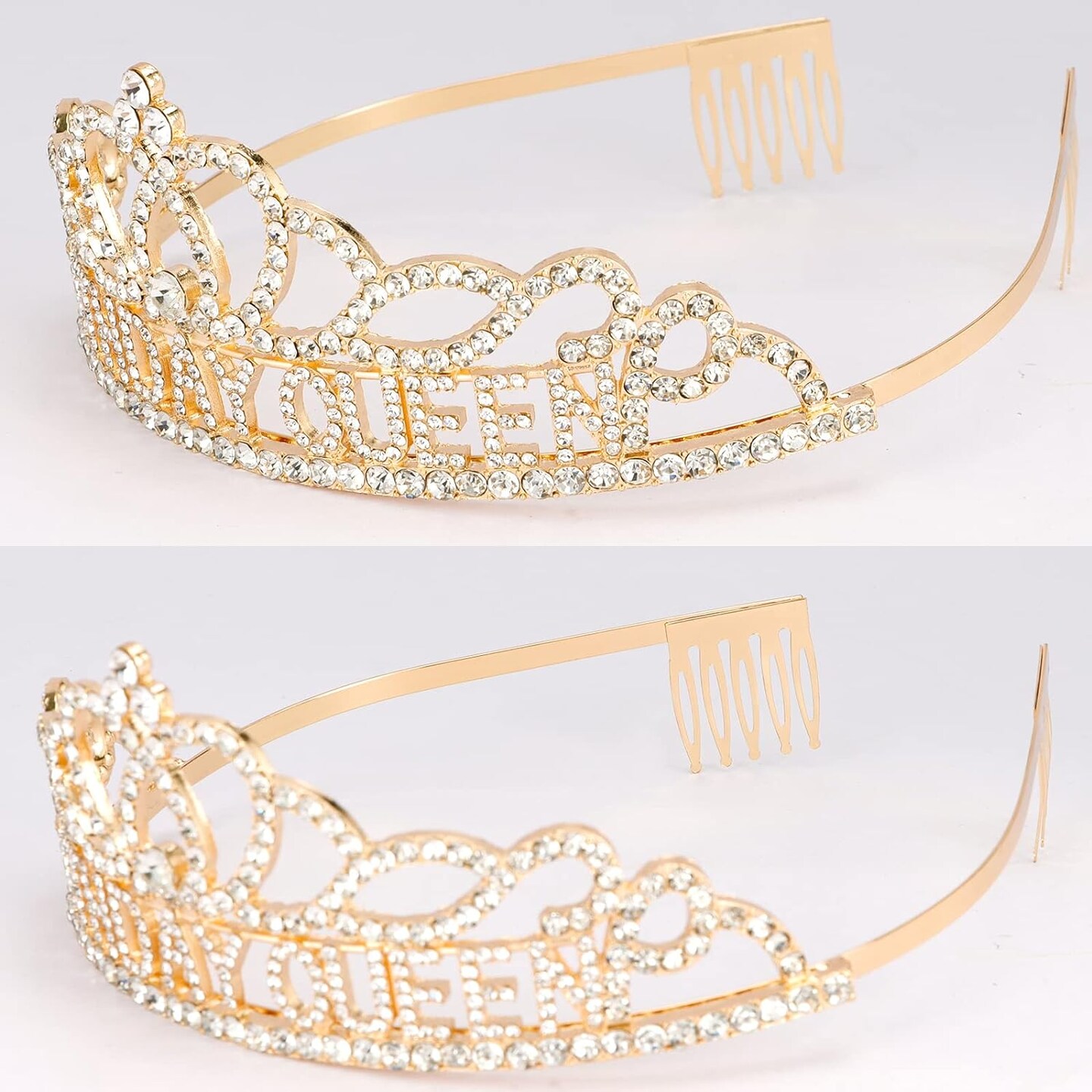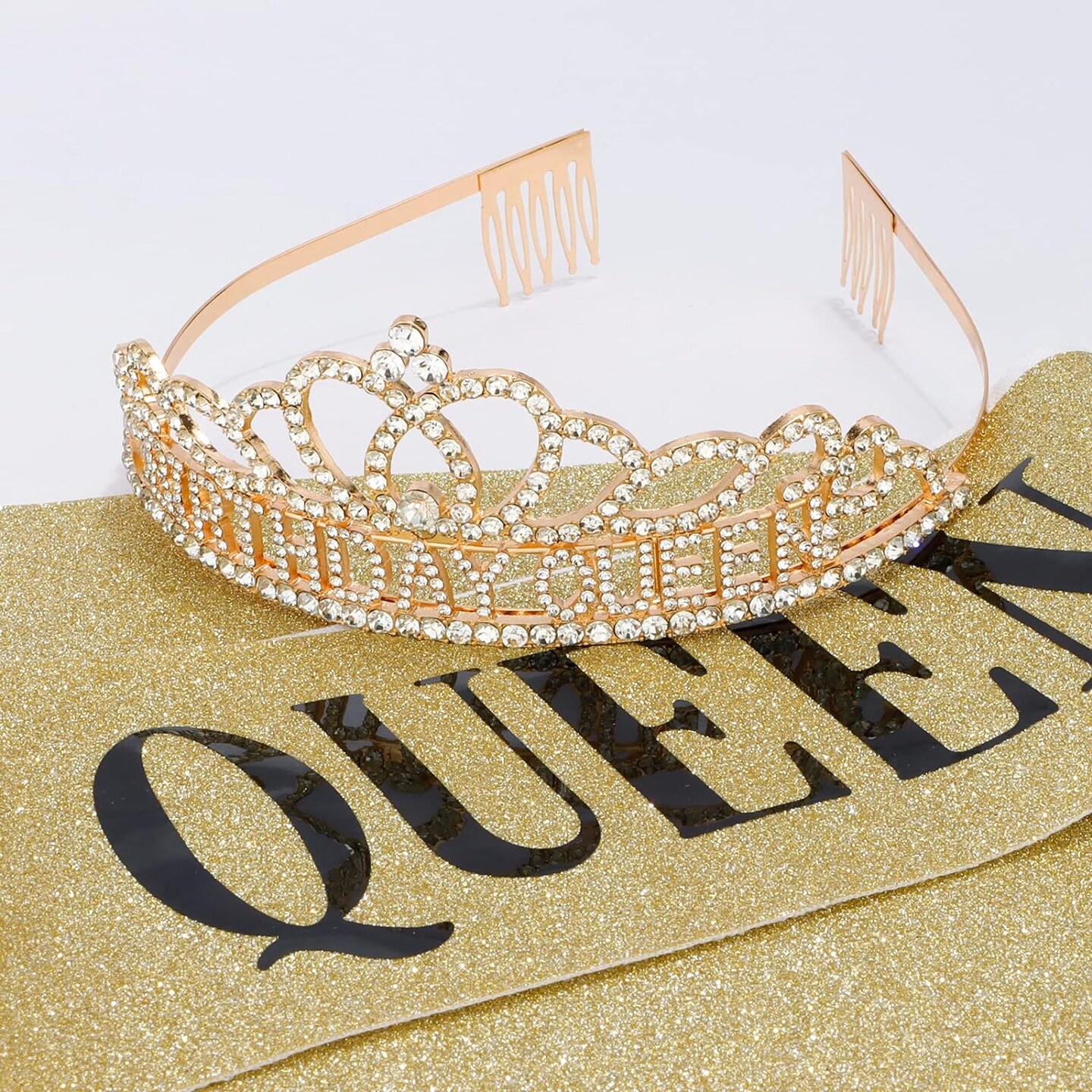 Gold Birthday Crowns for Women Birthday Queen Sash and Tiara for Women Gold Birthday Party Decorations for Women Birthday Sash and Crown for Women
