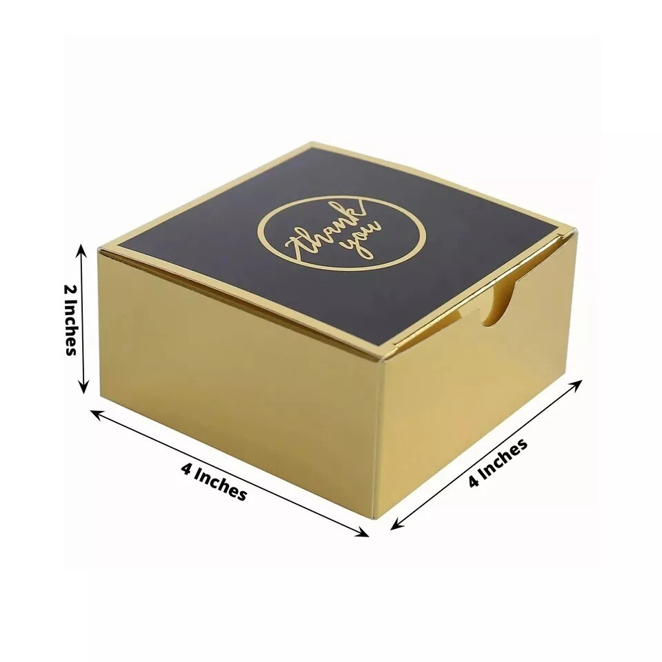 Gold Black 25 Square 4" x 4" Favor Boxes Thank You Print Gift Holders Events